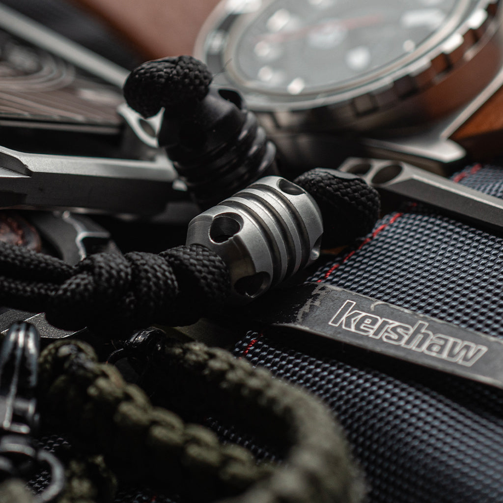 Introducing the Dango EDC Bead! With its combination of functionality, durability, and style, the Dango EDC Bead is set to become an essential addition to the EDC community. Crafted with precision and designed for versatility, this innovative accessory is set to redefine your everyday carry experience. CNC machined out of 6061 aerospace aluminum, this lathed bead can be used as an embellishment or a grip handle to help you draw your everyday carry gear. It can also be used to enhance your zipper pulls and lanyards. Sold as a starter kit - the Dango bead is paired with a 24" (~61cm) 550 black paracord for you to weave a beaded lanyard in your own way! In addition, with multiple holes designed on the Dango Bead, you can get creative with weaving patterns and combine your weaves with both 550 and 95 paracords!