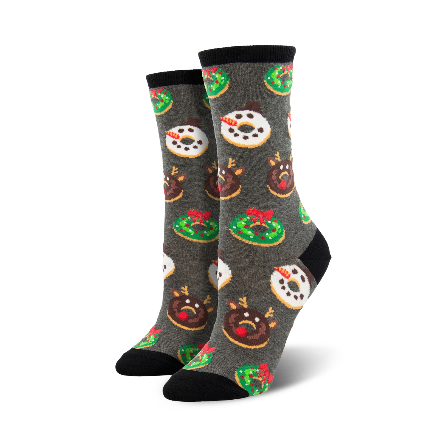 Spice up your sock game with our Decorative Donuts Crew Socks! Put on a festive spin Christmas morning when you rock these gray beauties adorned with jolly doughnuts, wreaths, presents, and prancing reindeer. Like a holiday party for your feet, these socks will leave you feeling merry and bright all season long.