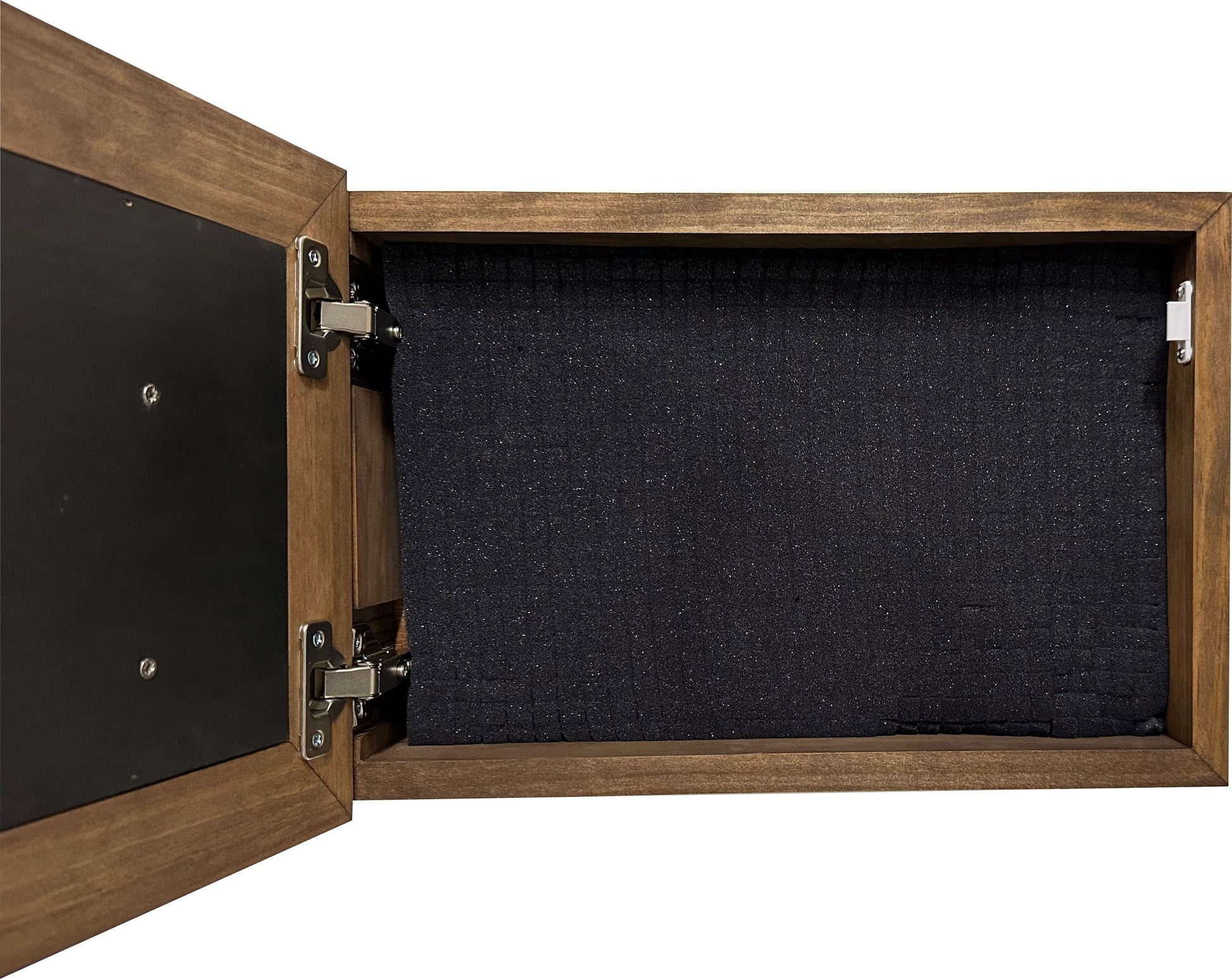 Securely store your firearm in the Bellewood Designs Decorative Cross and Exodus 22:2 Verse Wall-Mounted Secure Gun Cabinet. Your firearm and other tactical gear is easily accessible yet securely stored, so you'll never have to worry about leaving it unattended. Once you apply the key the lock immediately disengages and you're ready for self defense. This cabinet features a special walnut frame and box, black background and an eye-catching 3D cross and the Exodus 22:2 bible verse. The cabinet will be a focal point of any room and no one will ever know what's inside!