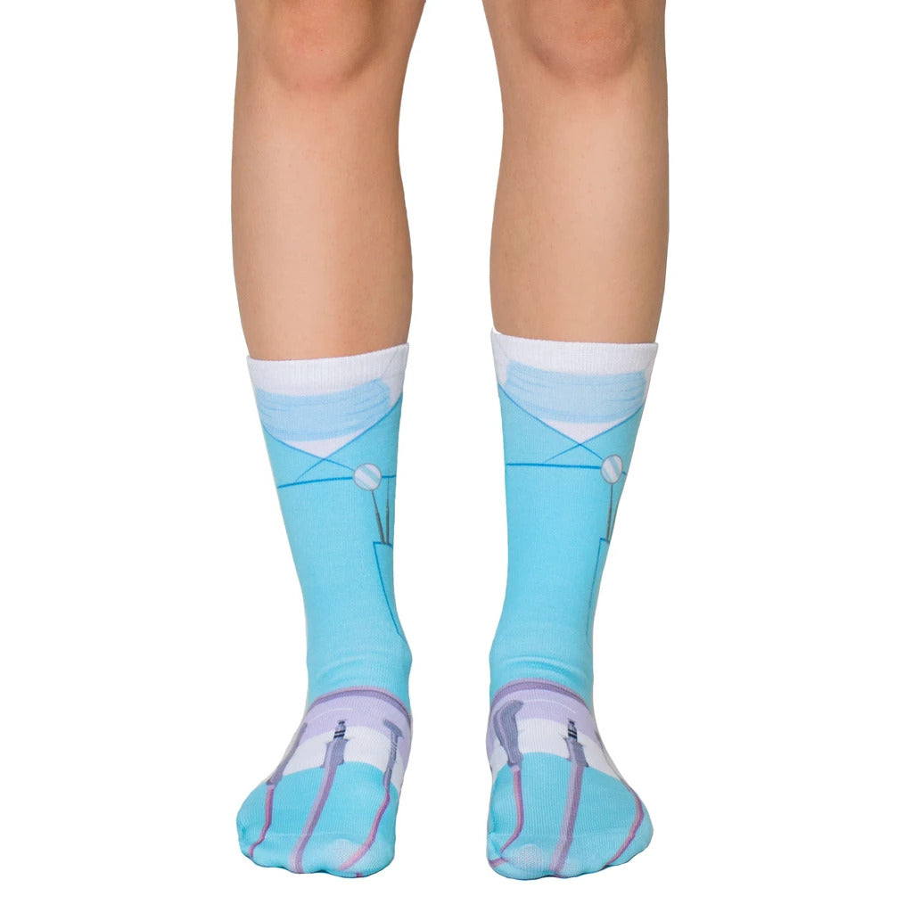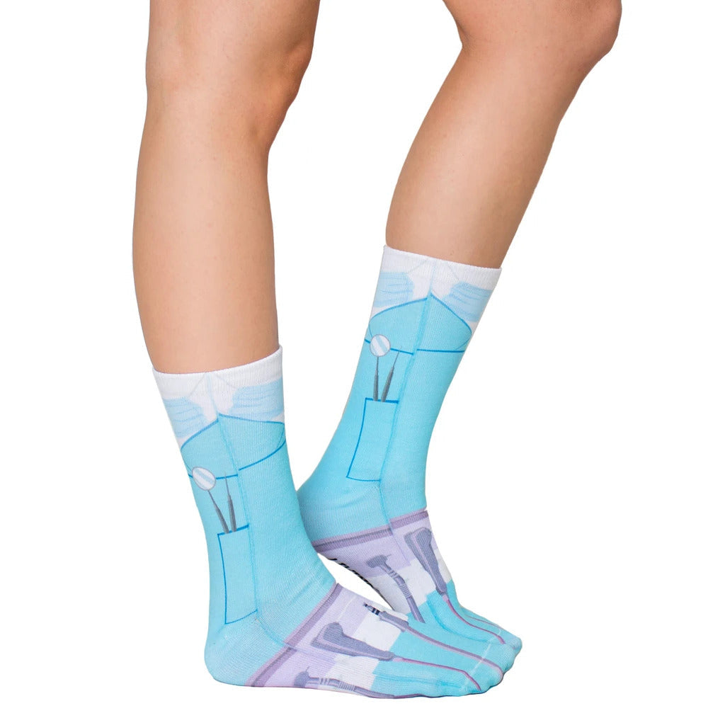 Who needs a root canal when you can wear these Dentist socks instead? The bright blue color and white collar give them a crisp professional look, while the dental instrument pattern ensures you'll always have a smile on your face. Whether you're a dental professional or just someone who likes to keep their teeth healthy, these socks are sure to put a smile on everyone's face. Fun fact: dentists are often considered "tooth fairies!"