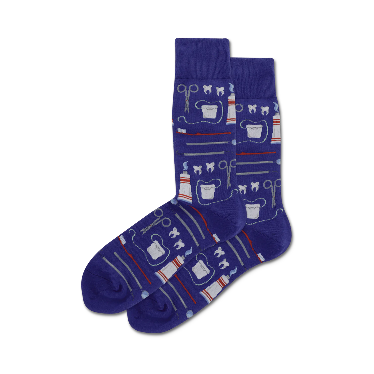 Dentist socks are mouth-dropping! Brush up on your style with crew-length purple socks splashed with toothy grins, minty tubes of toothpaste, smiley toothbrushes and cheerful floss. Perfect for the dental professional or anyone needing a smile adjustment.
