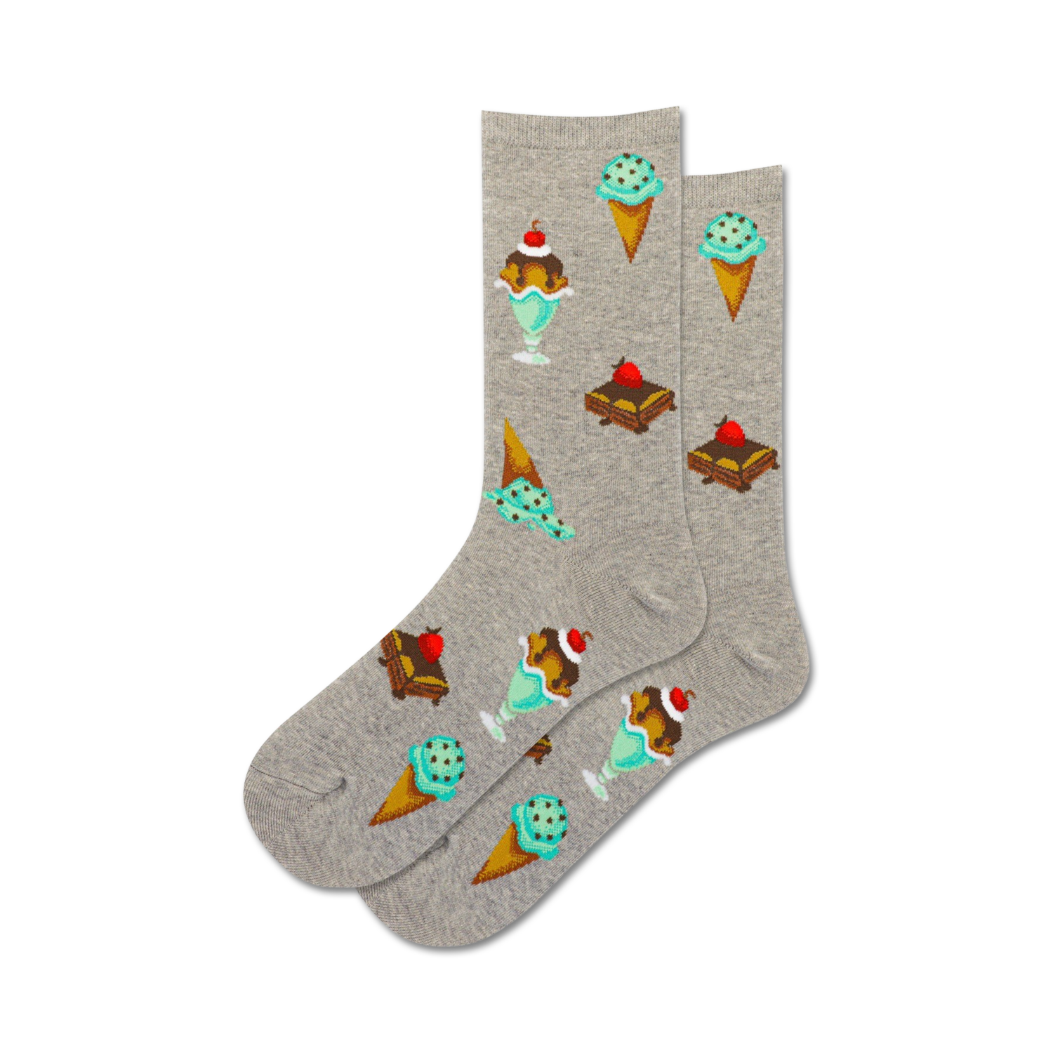 Have a sweet tooth, but don't want the calories? Treat your feet to a delectable display of decadent desserts with these "Desserts" sock selection. From scrumptious sundaes and luscious layer cakes to tempting ice cream cones and fudgy brownies, these socks have it all! Wear them to your next party and watch as everyone "kneads" to know where you got them!