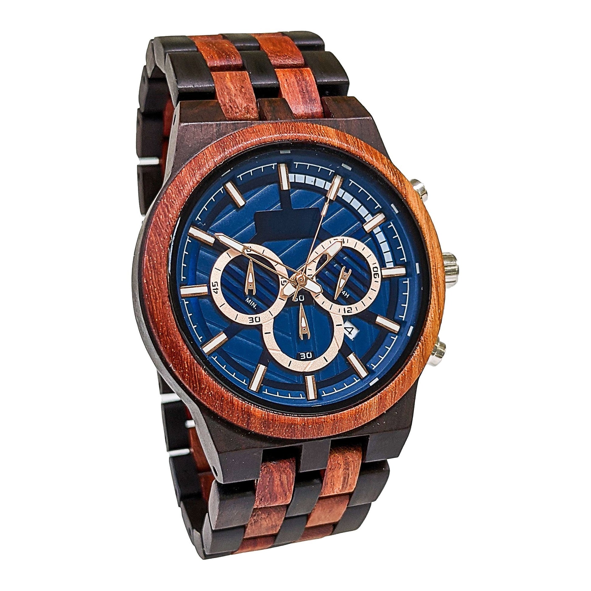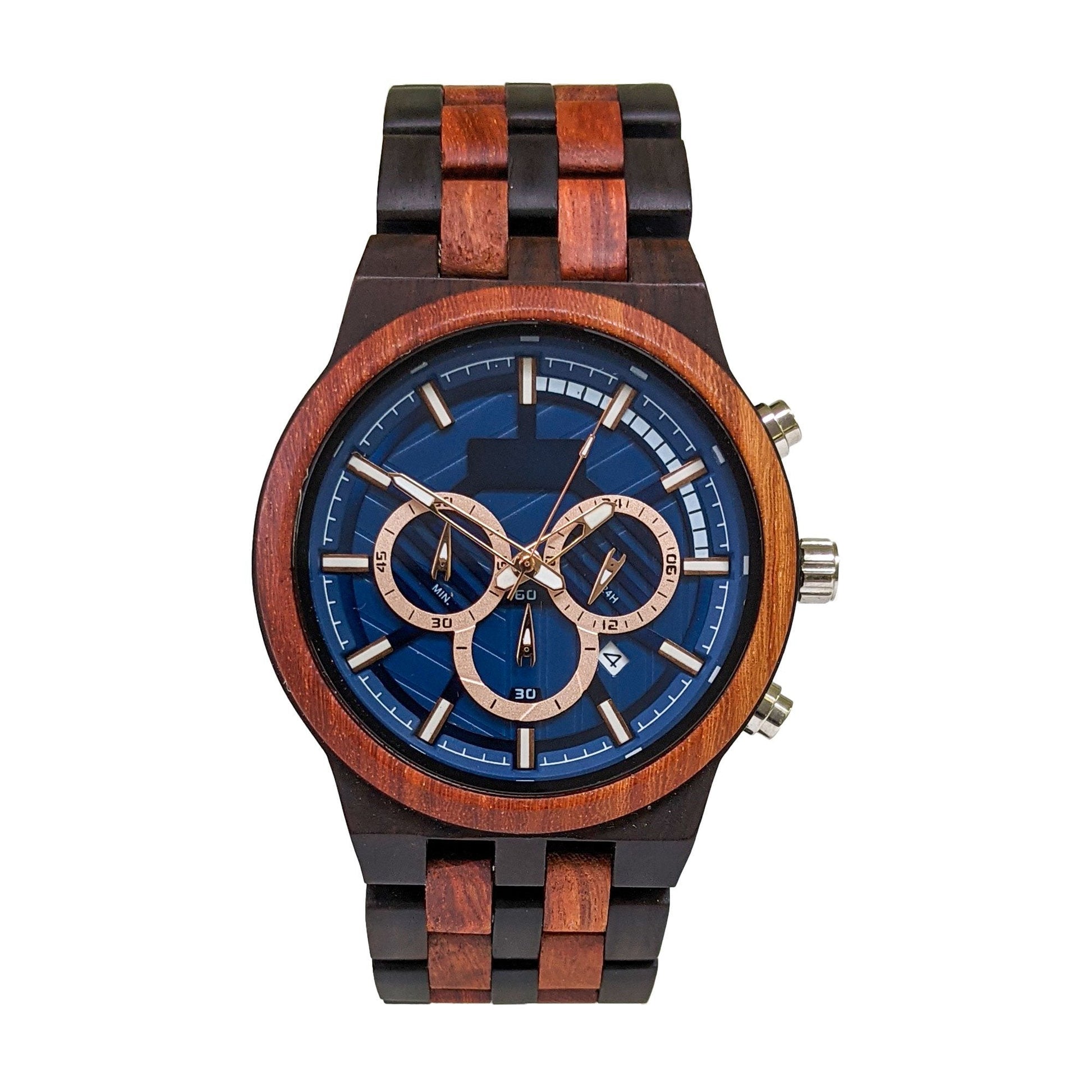 Let your wrists make a bold statement with Digno's Black Red wood watch! This wooden-crafted timepiece is sure to turn heads, while its chronograph will make sure you keep up with the times. Make a lasting impression and treat yourself or the special man in your life to a one-of-a-kind piece of art!