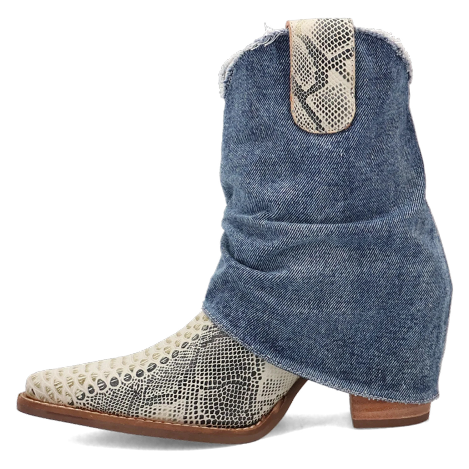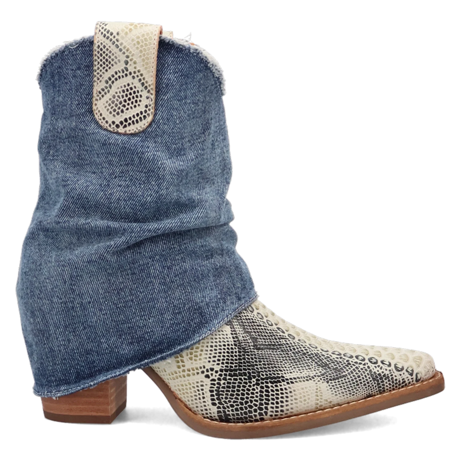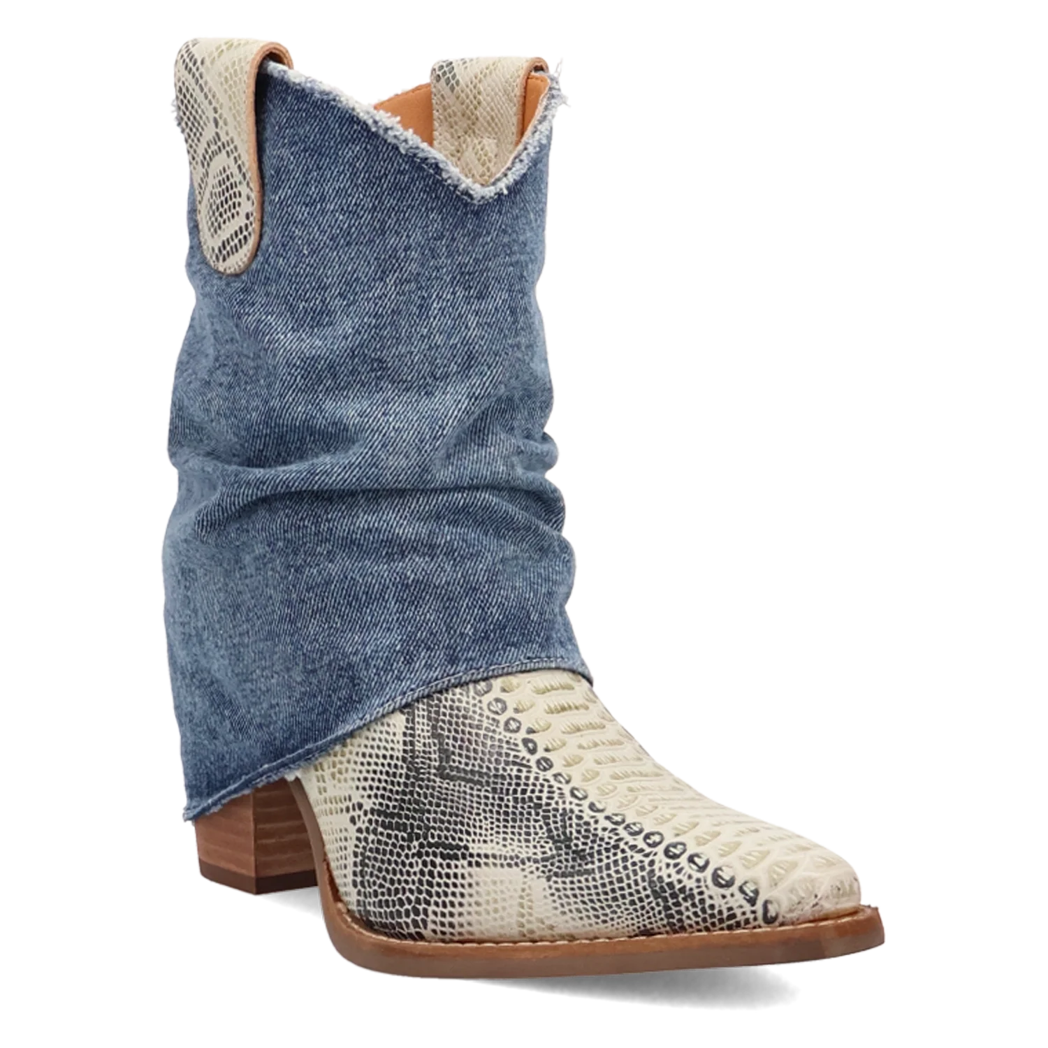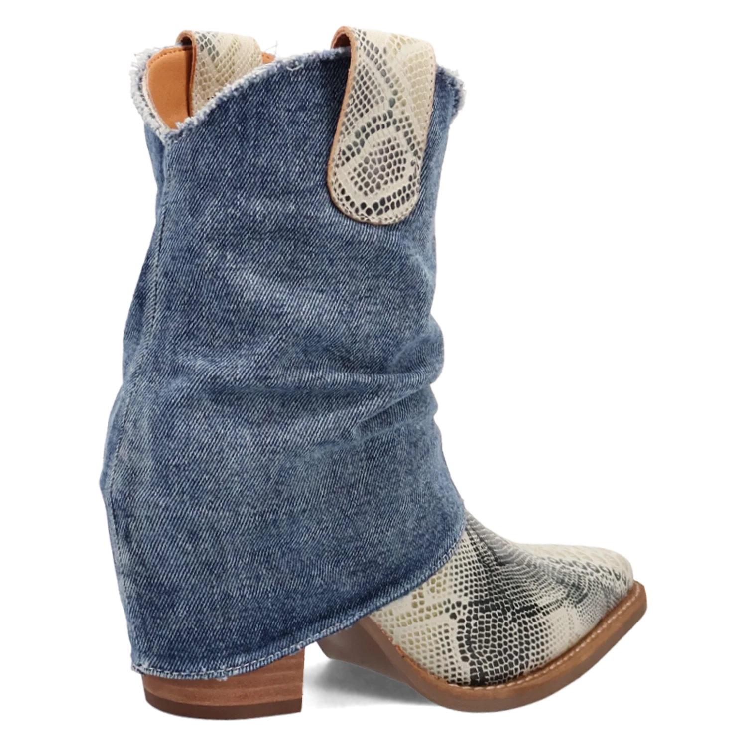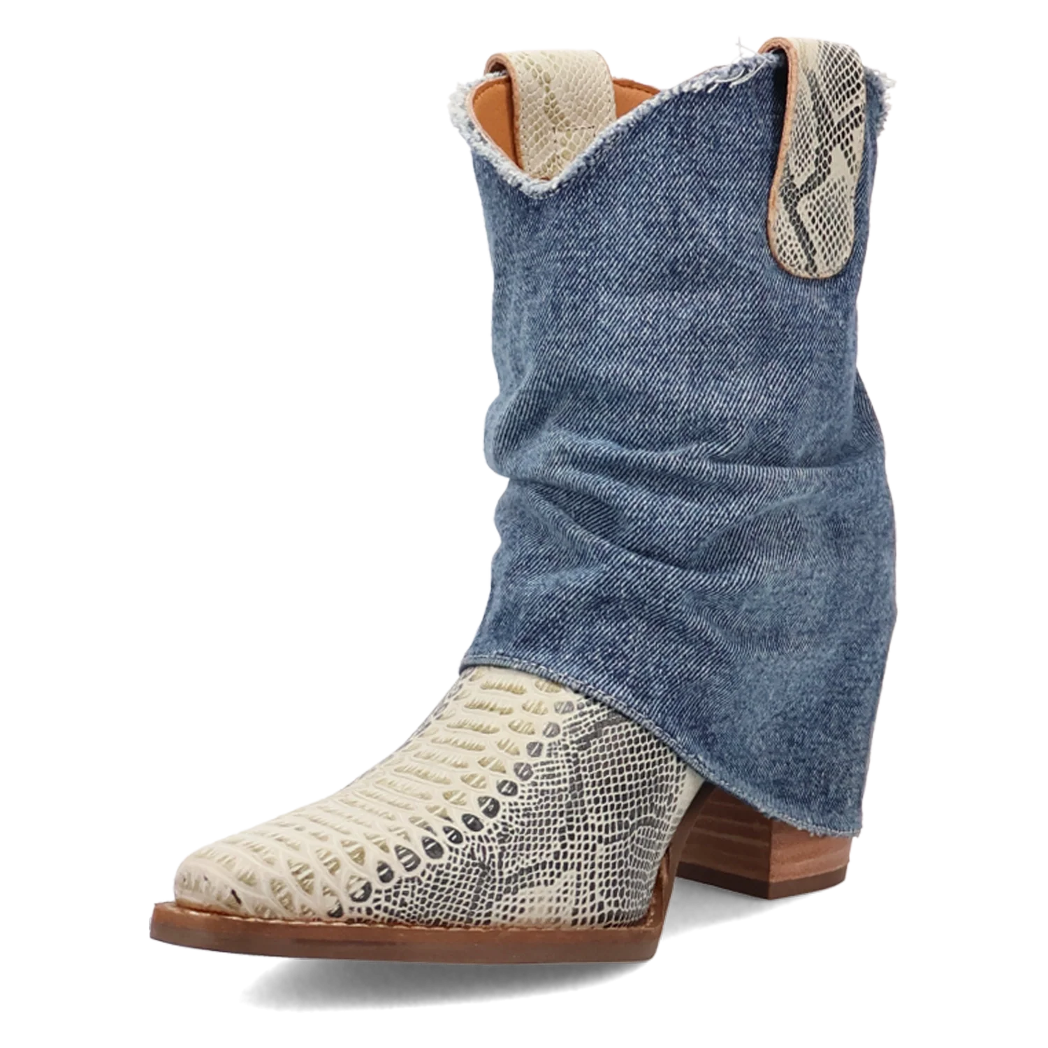 The Dingo Denim Dream boot is a little bit country and a whole lot of cool. Made from genuine leather, this ankle-high boot features a 7" shaft and 10" circumference for a snug, stylish fit. Subtle Western stitching adds texture and charm, giving it a timeless look with a modern twist.