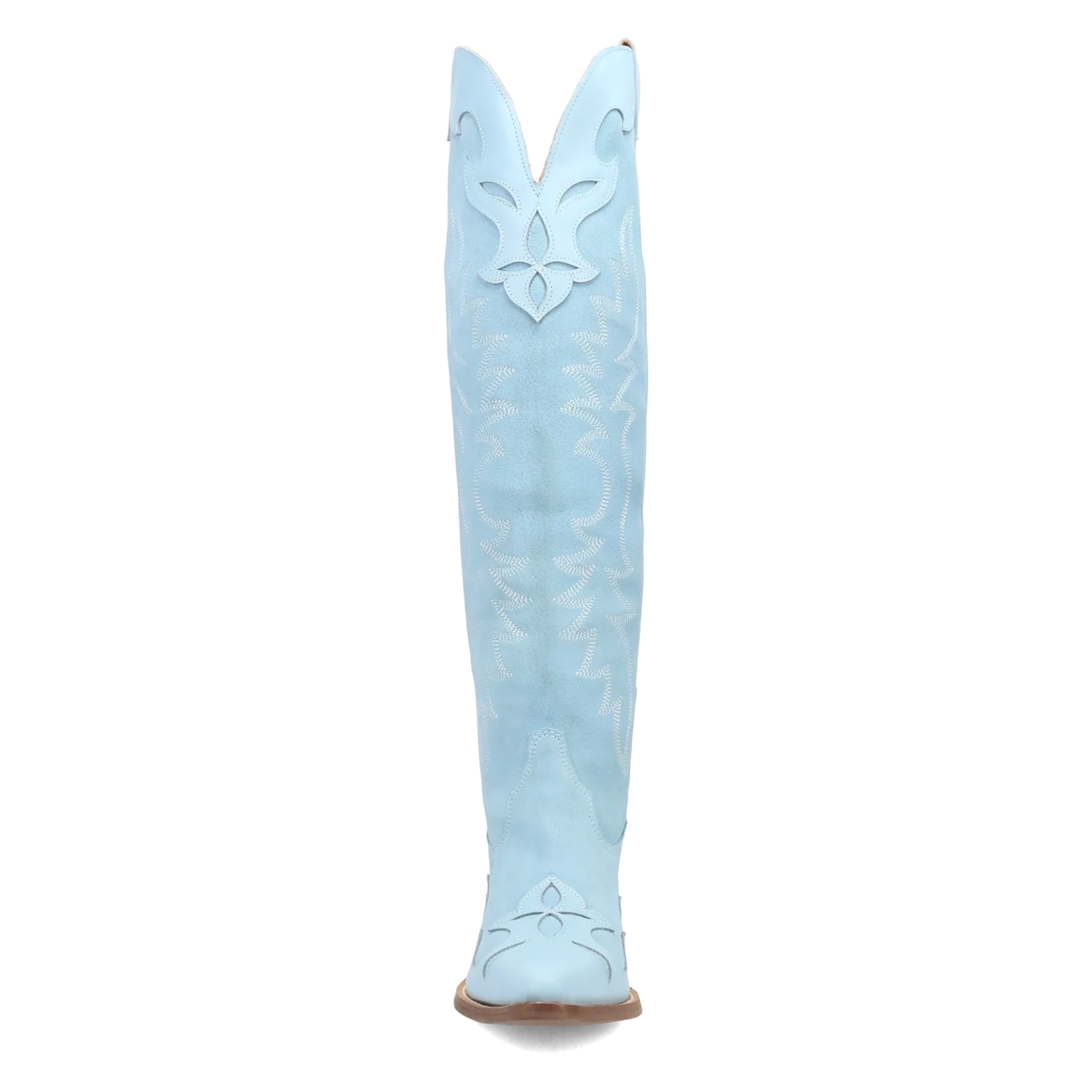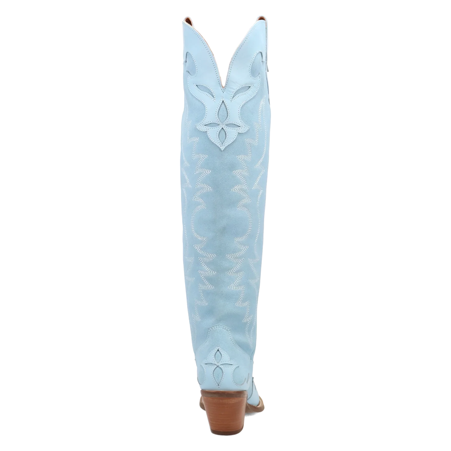 The Dingo Drama Queen boot is made to steal the spotlight. Crafted from soft suede leather, it features a dramatic 18" shaft and a bold 16" circumference that commands attention. Eye-catching Western stitching covers the shaft, adding texture, movement, and plenty of attitude to this standout design.