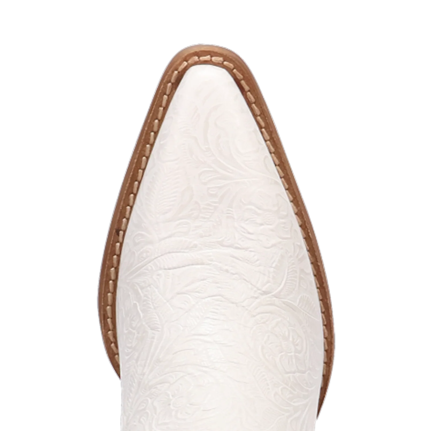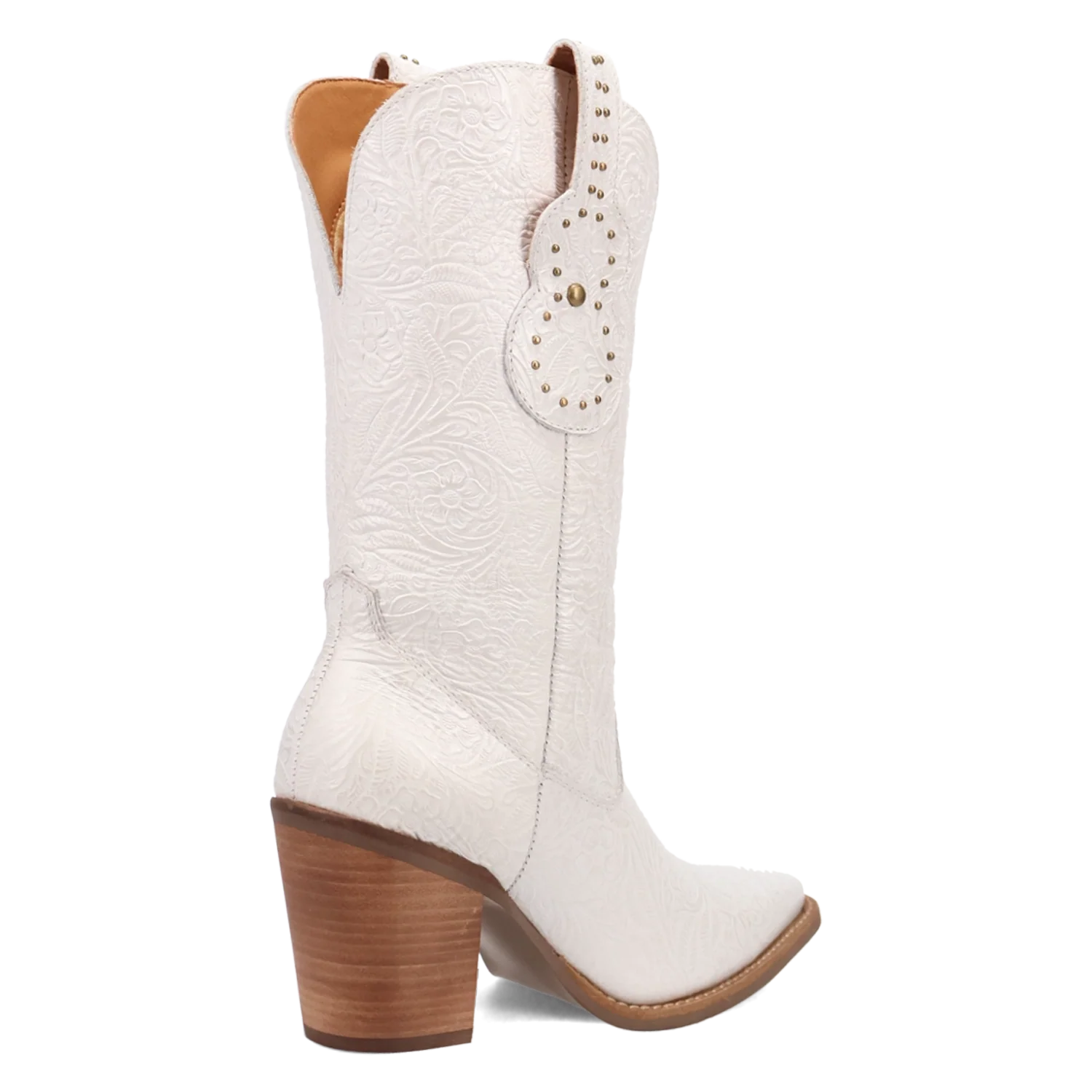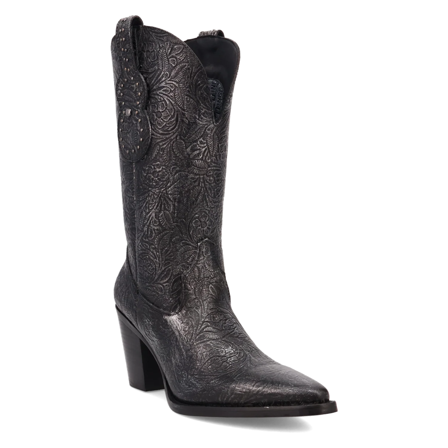 The Dingo Rhythm N' Blues boot hits all the right notes with its soulful blend of vintage charm and modern flair. Made from rich leather, it features an 11" shaft with embossed detailing that adds texture and depth to its classic Western silhouette. The 12" circumference offers a comfortable, flattering fit that pairs effortlessly with anything from jeans to dresses.