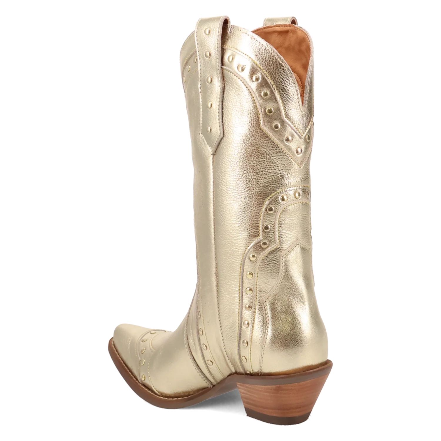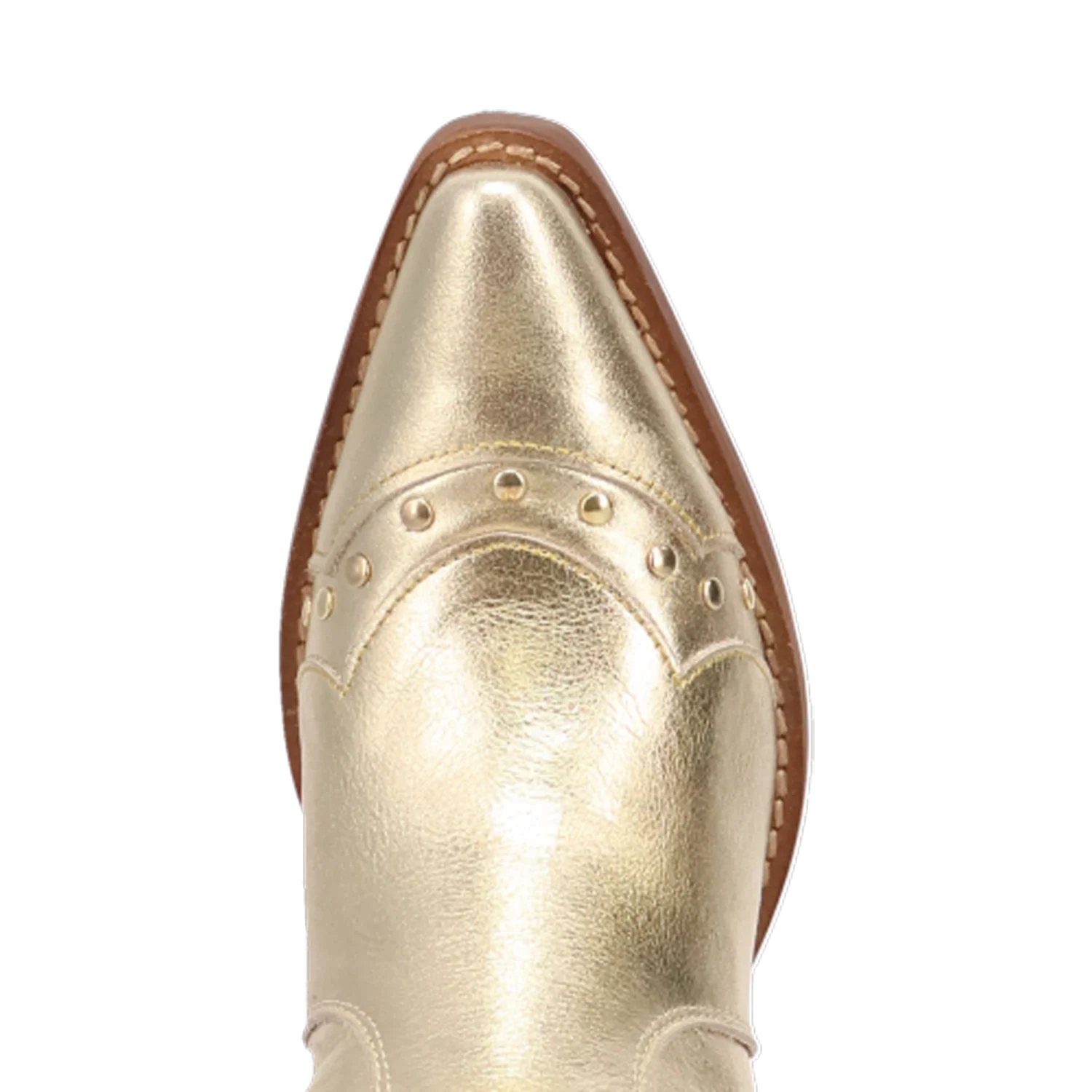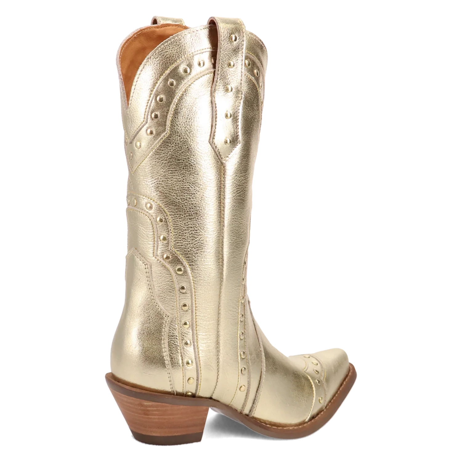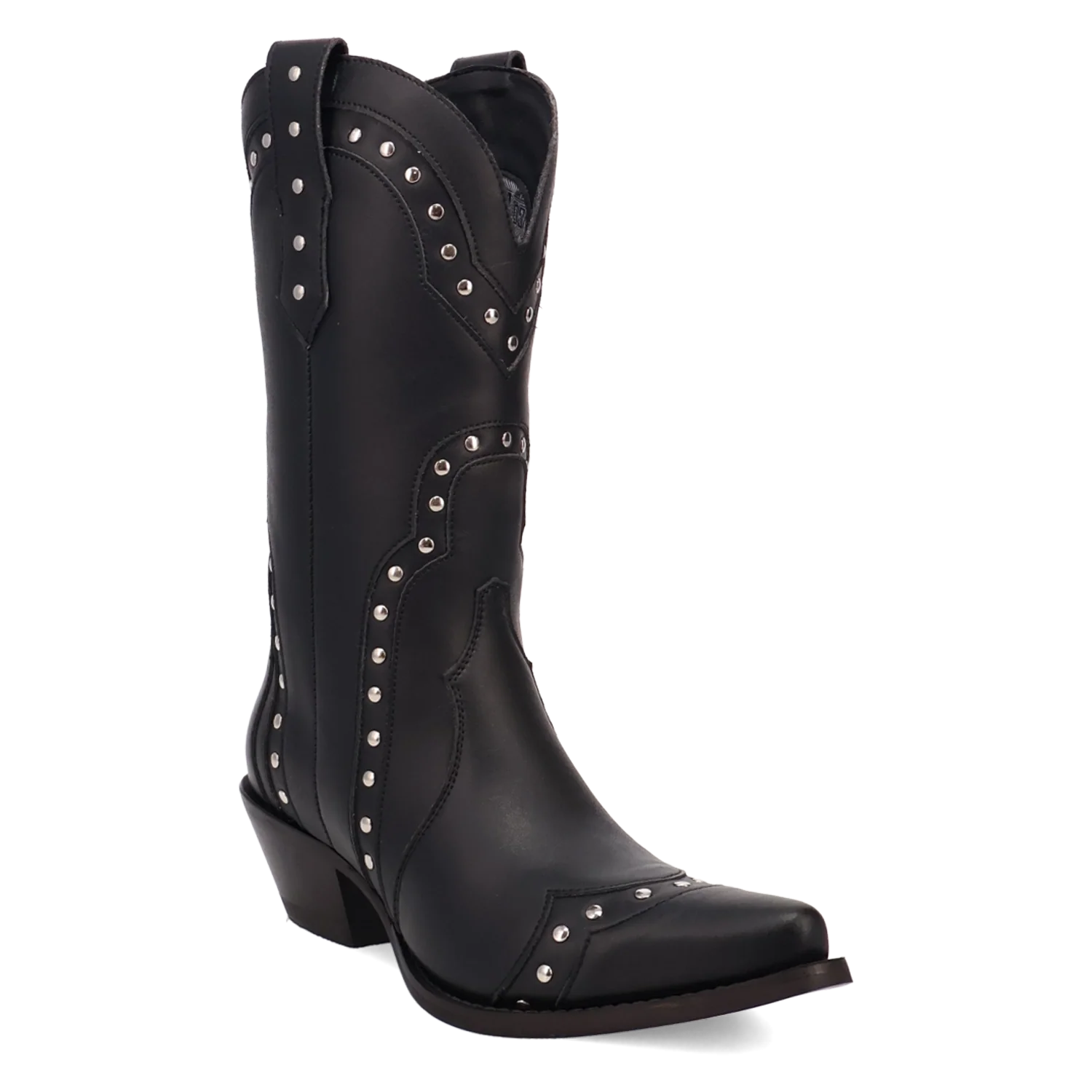 The Dingo Sweet Treat boot is a bold mix of sugar and spice. Made from genuine leather, this standout style features an 11" shaft decorated with an eye-catching pattern made of metal rivets. The intricate design brings a tough, stylish edge to a classic Western silhouette.