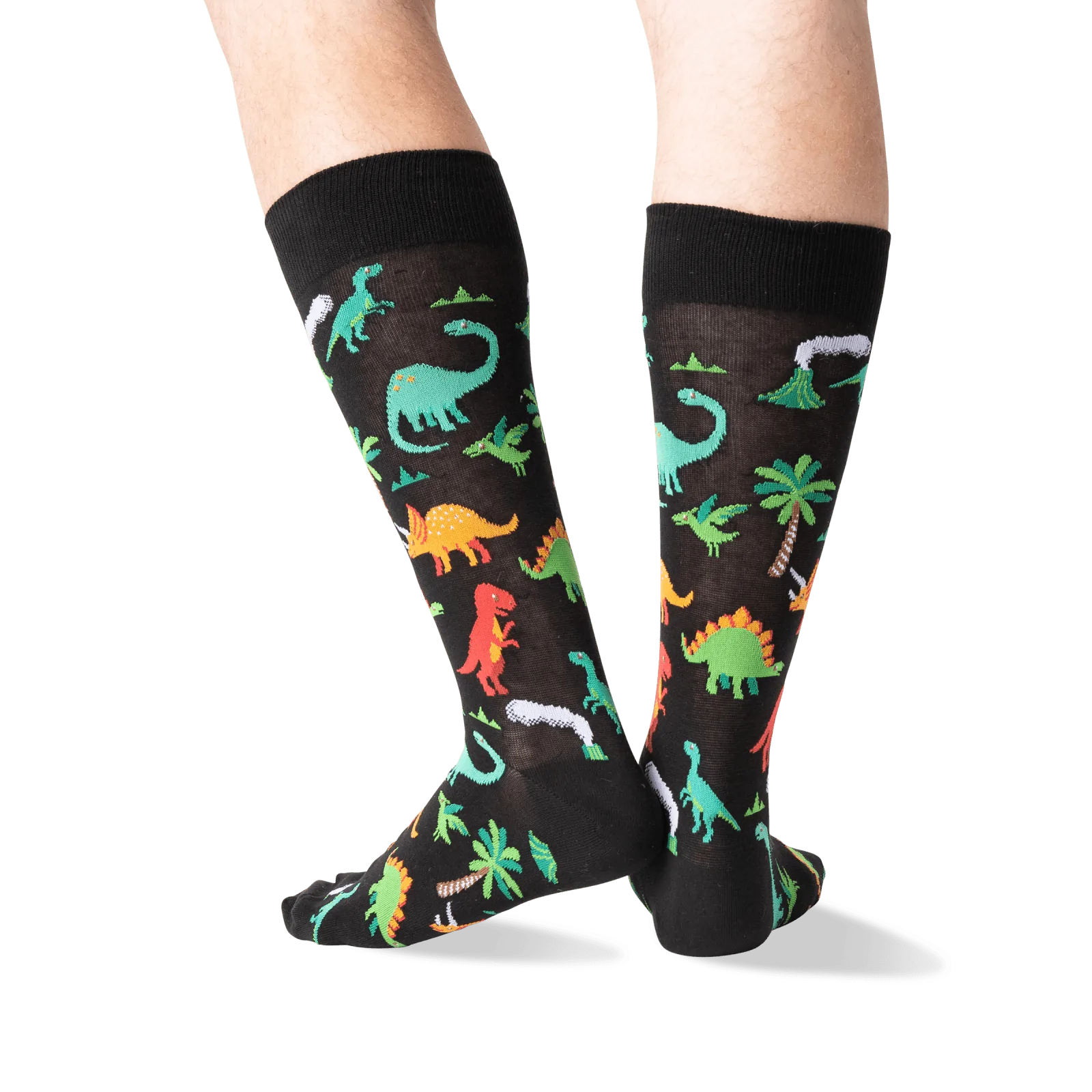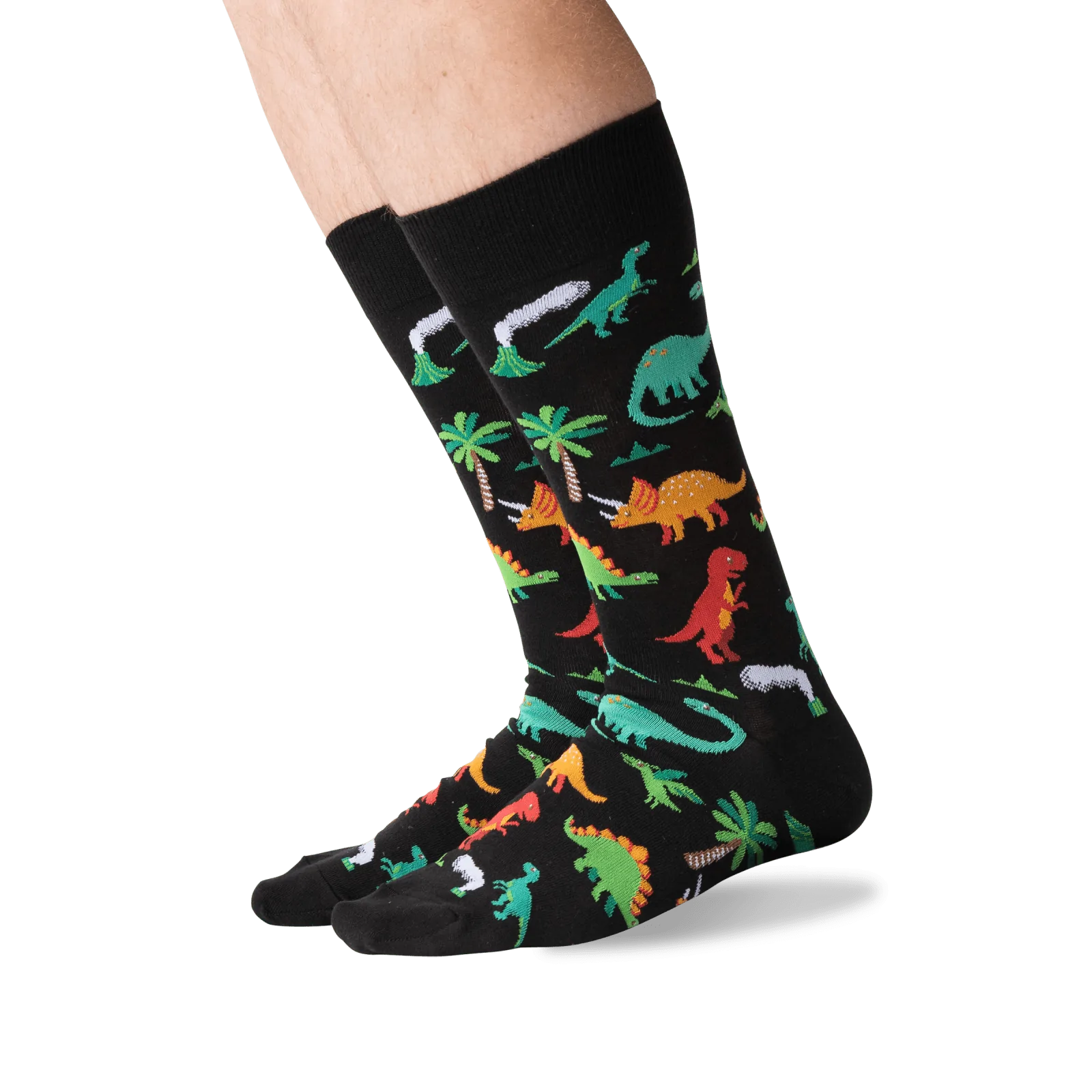 The pre-historic crew socks feature the terrifying lizard in their natural habitat amongst the palm trees and ferns. Tyrannosaurus Rex will help keep your toes warm and stylish. Now with added stegosaurus for brain-boosting style.