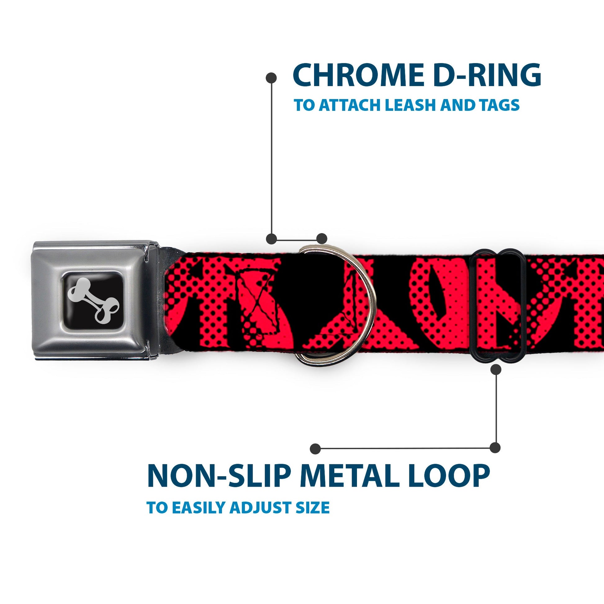 Dog Bone Seatbelt Buckle Collar - Peace Dots Black/Fuchsia