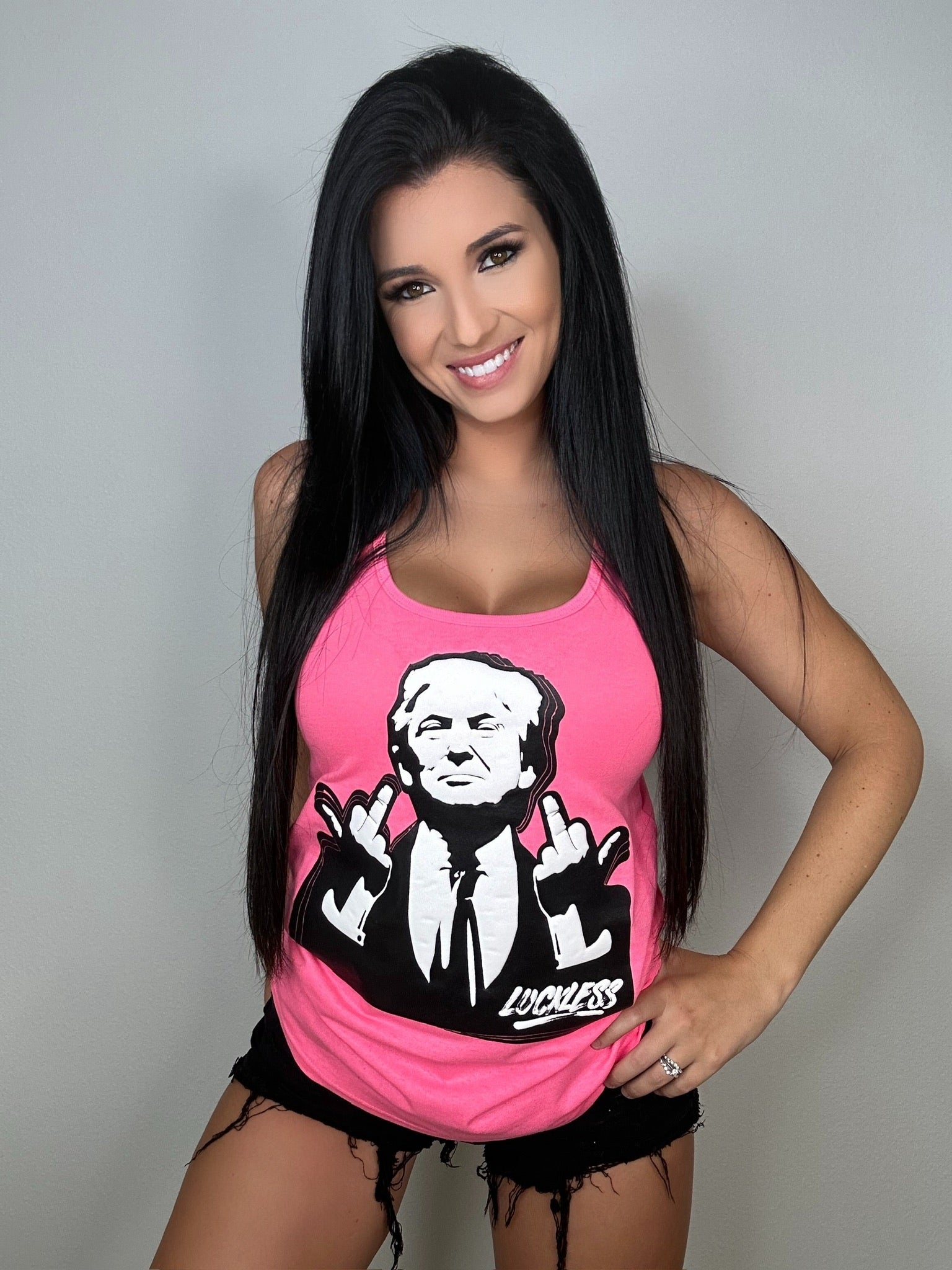 We designed this one for those who don’t just walk their own path — they stomp down it in boots, cracking jokes the whole way. Whether you’re flipping off life’s nonsense or just having some fun with friends, this tank has your back. It’s a perfect mix of humor, rebellion, and pure Luckless attitude.