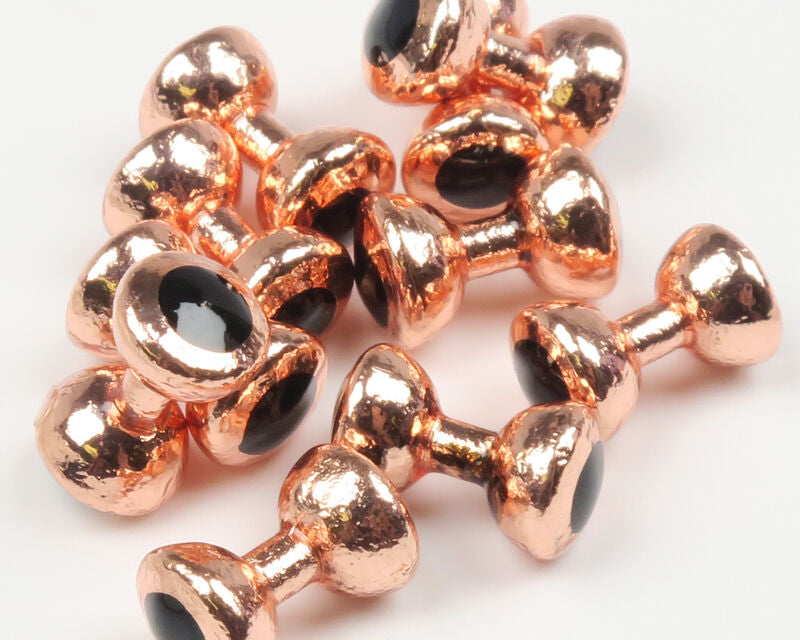 Painted red with black pupil and are available in three sizes X-small, Small, and Medium. Very effective when used on the Clouser Deep Minnow. They are packed 10 per bag.