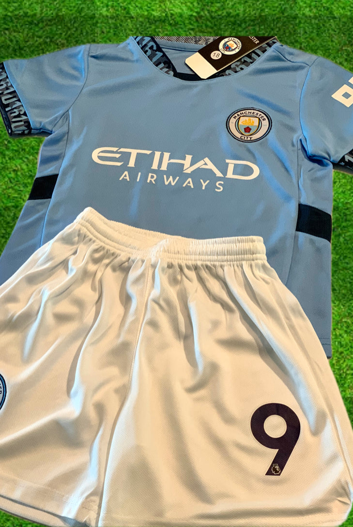 Erling Haaland Kids Soccer JerseyManchester City Youth Toddler Sizes. Football Youth Toddler Football Shirt and Shorts matching set. Toddler Youth Tshirt Awesome Youth Soccer Jersey and shorts set of 2. Size 2T, 3T, 4T, 5T, 18, 20, 22, 24, 26, 28, 30. All in stock ships within 12 hours from order time. We ship from Missouri. All soccer jerseys are brand new and never tried on. Amazing Screen Printing & Embroidery.