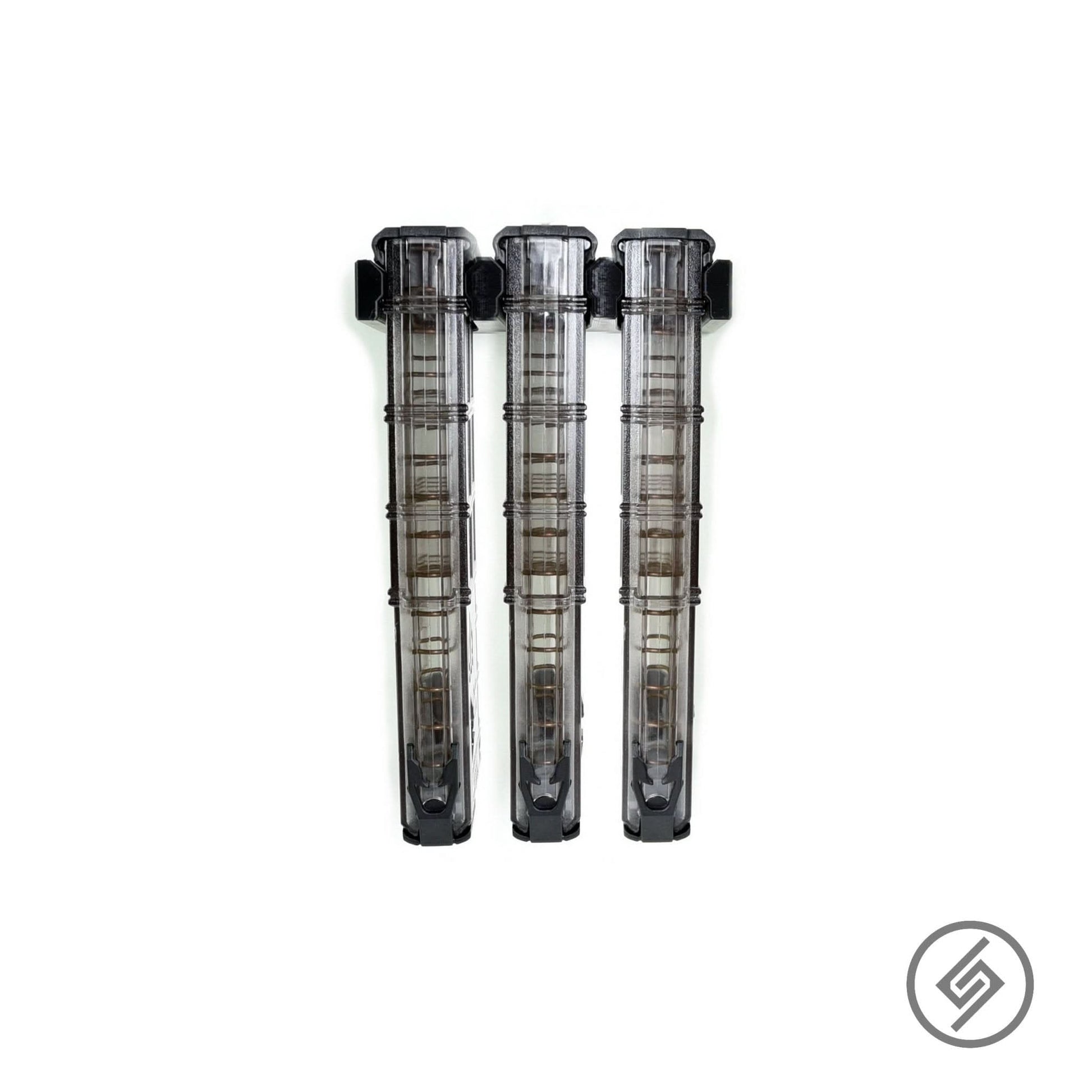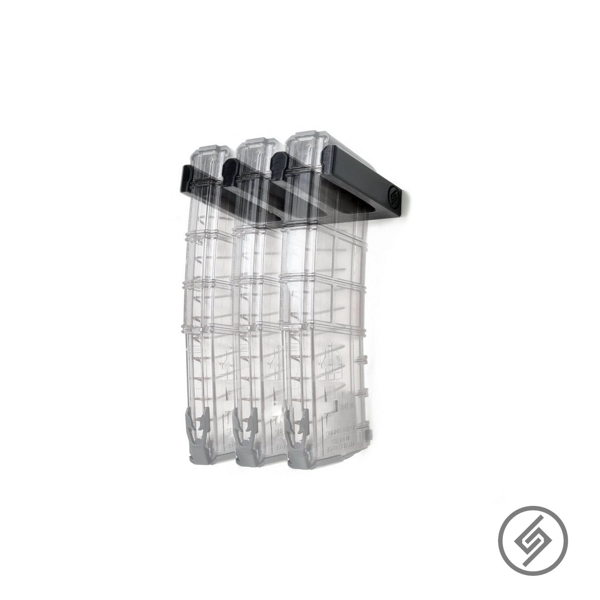 Store your ETS AR-15 magazines with confidence using our custom wall mount. Designed for a precise fit with ETS translucent polymer mags, it keeps your gear secure, organized, and ready for action. Perfect for gun walls, safes, or range setups. Built tough in the USA for shooters who trust ETS for fast, reliable performance.