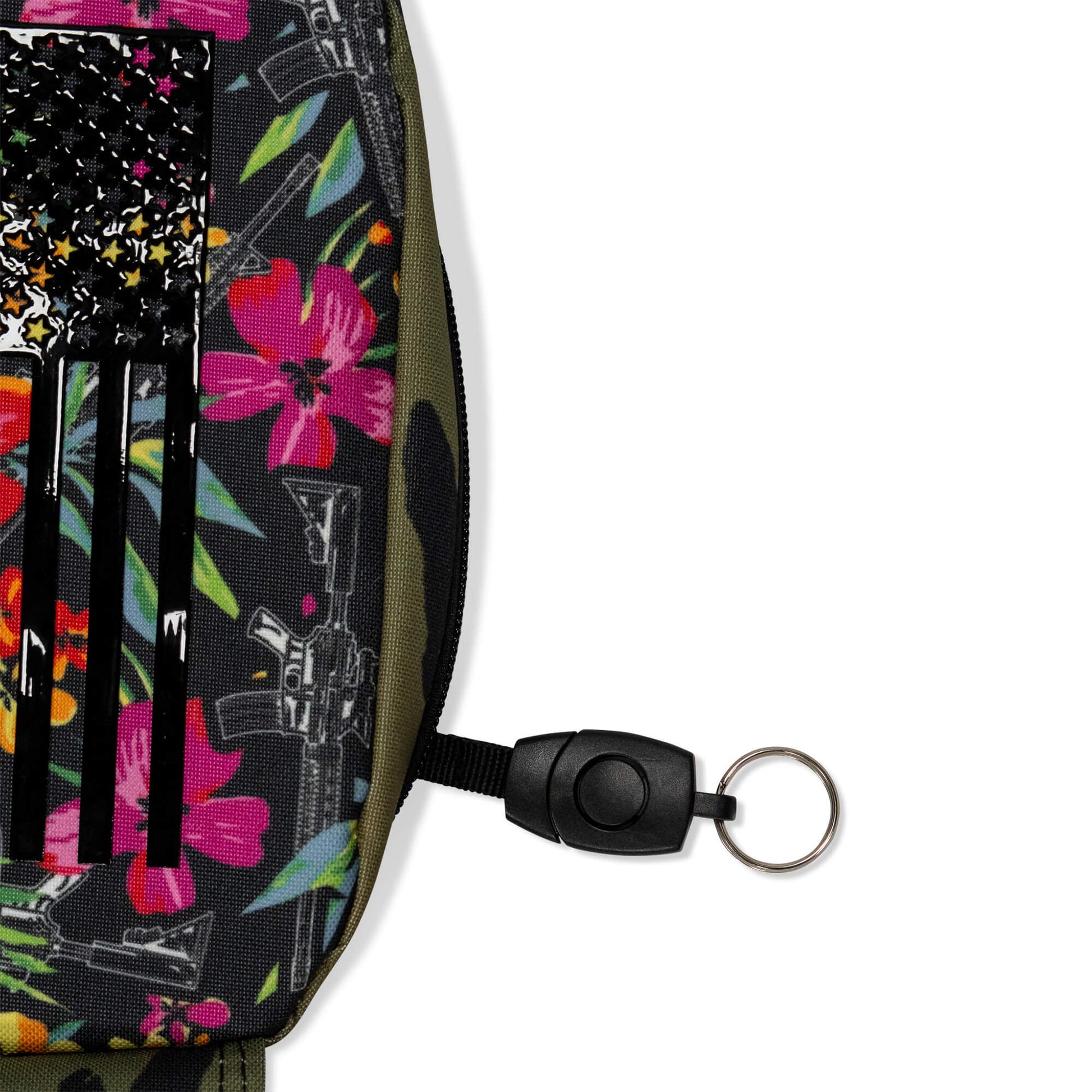 Crafted from custom-printed, weather-resistant nylon that stands up to rain, dirt, and hard use. Two roomy compartments hold your sidearm, wallet, keys, and other must-haves—without the bulk.