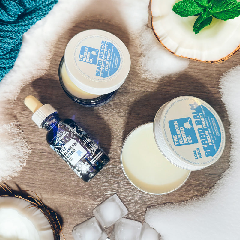 Experience the refreshing touch of the cold season with our limited edition release, Feelin' Frosty! This wintry blend comes in Beard Oil, Beard Balm & Beard Rescue variations, and boasts a fragrance mix of Sweet Mint & Fresh Coconut.