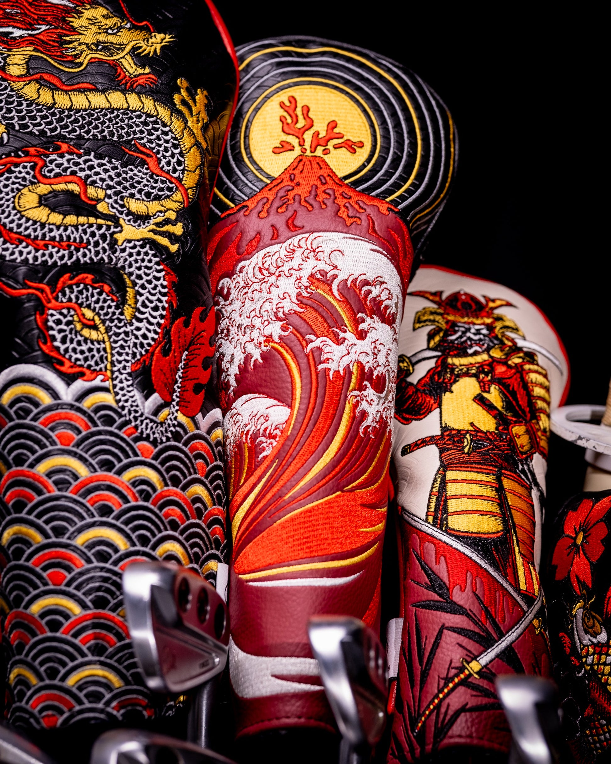 - Stylize and customize the look of your golf bag with this high quality, hand-made Fairway Wood head cover. Featuring hand sewn panels and construction with embroidered design and hand sewn leather panel stripes. This 3-wood head cover is tour inspired and trusted by pros on tour.