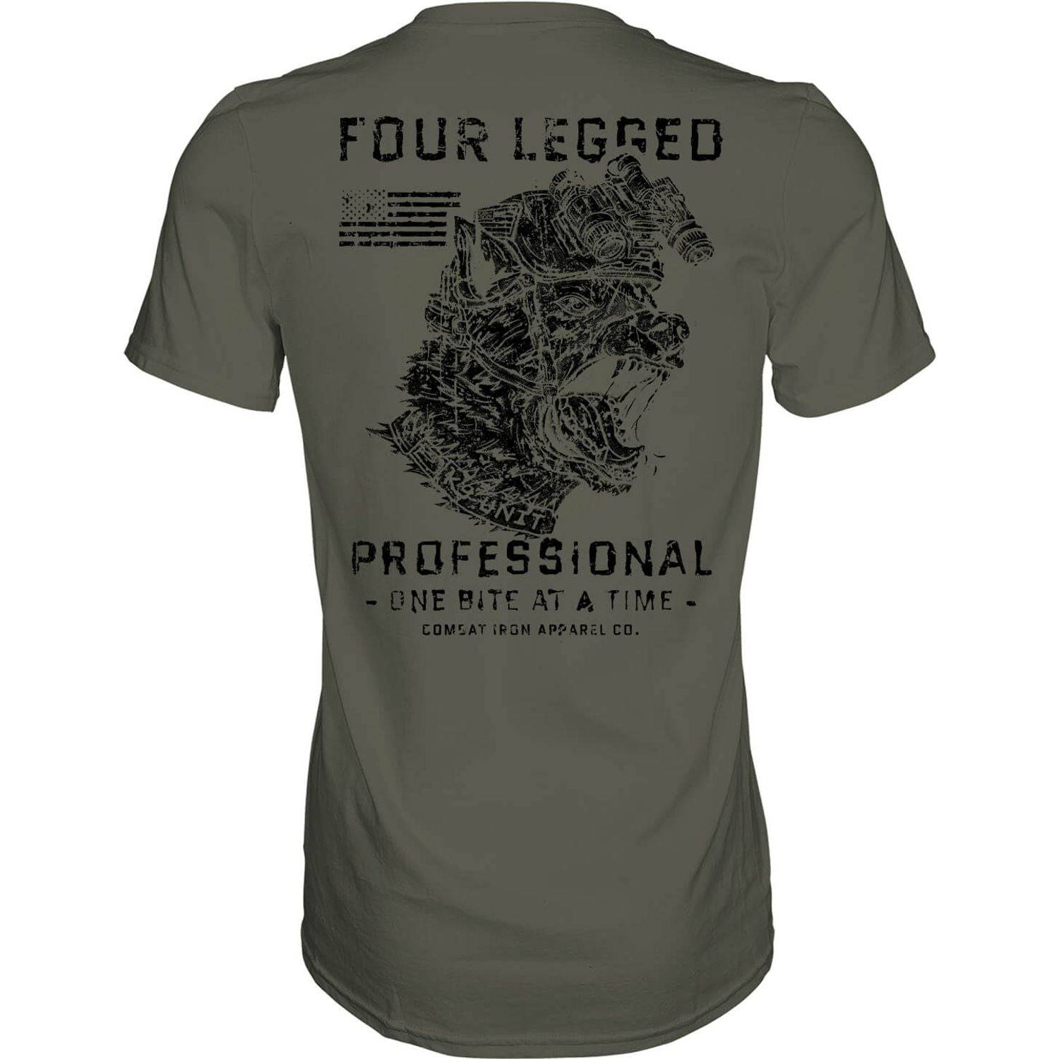 Support all K9's with our new Four Legged Professional - One Bite At A Time T-Shirt. Perfect design for any K9 lover.