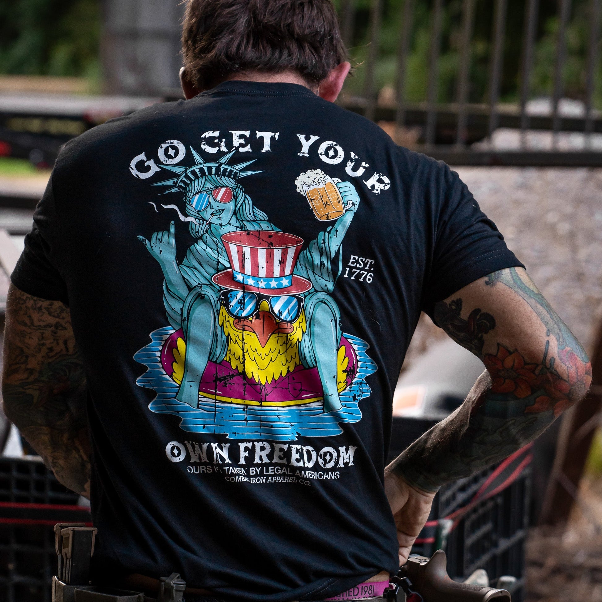 Custom design printed in house to ensure comfort without compromise. Breathable, pre-shrunk, and ready to take a beating, it’s perfect whether you’re busting your ass in the gym or kicking back with a cold one. Easy to wash, No box cut, No fluff, No BS—just a well-designed tee that feels good and fits even better.