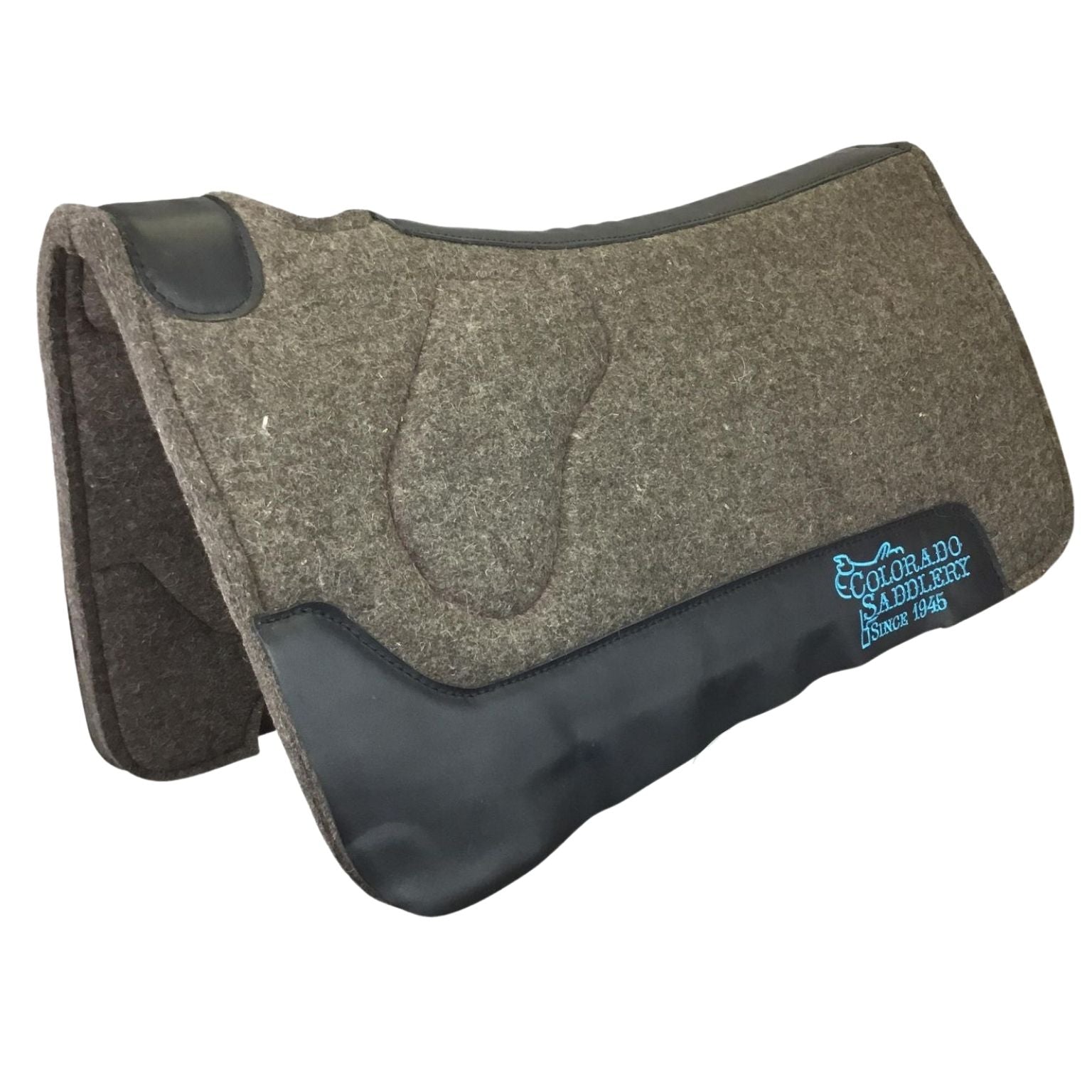 Horse experts generally agree that 100% natural wool is best for a horse's back. This pad is made out of thick, durable pressed wool, which not only protects the horse's back, but keeps the saddle in place. Wool also wicks away moisture from the horse's back and has cooling properties that help to regulate body temperature. The wither cut-out provides a heat reducing pressure release and is held together by top quality, secure leather. Wool saddle pads are also exceptionally easy to clean, and only get better over time as they form to the shape of the horse.