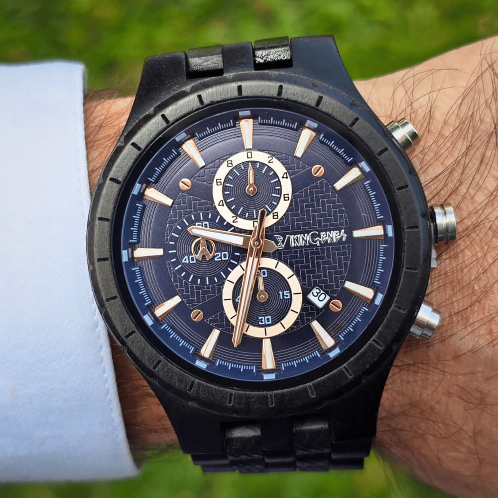✔ 1x Engraved Ebony Wooden Chronograph Watch