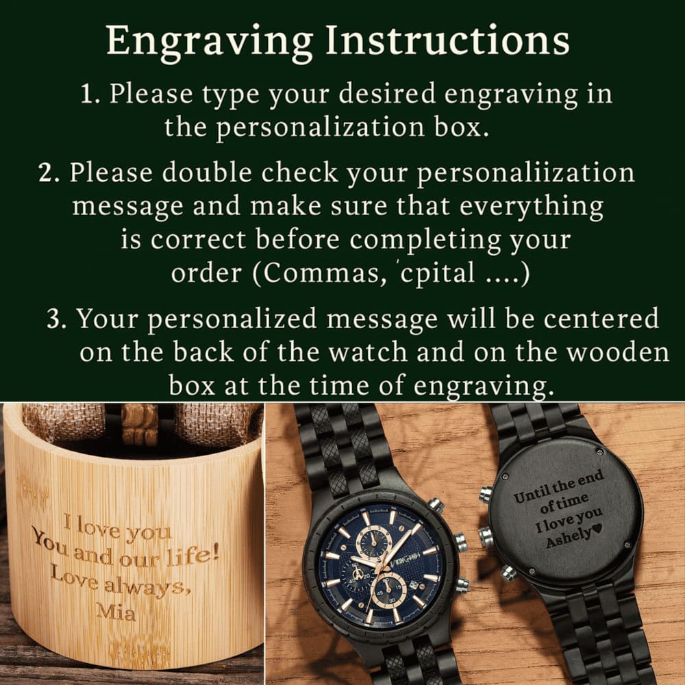 ✔ Custom Engraving – Personalize the back of the watch and the wooden box with names, dates, or a heartfelt message.