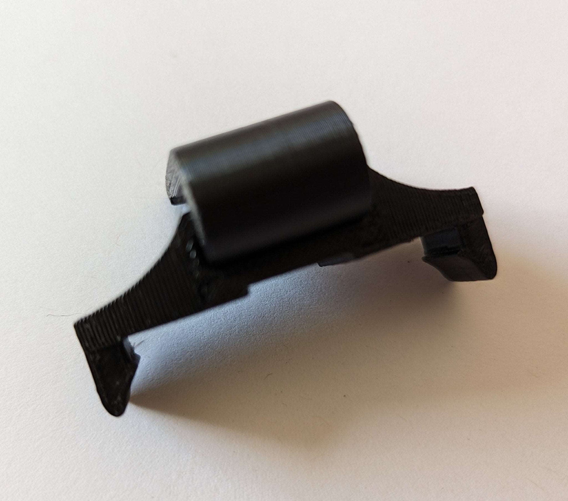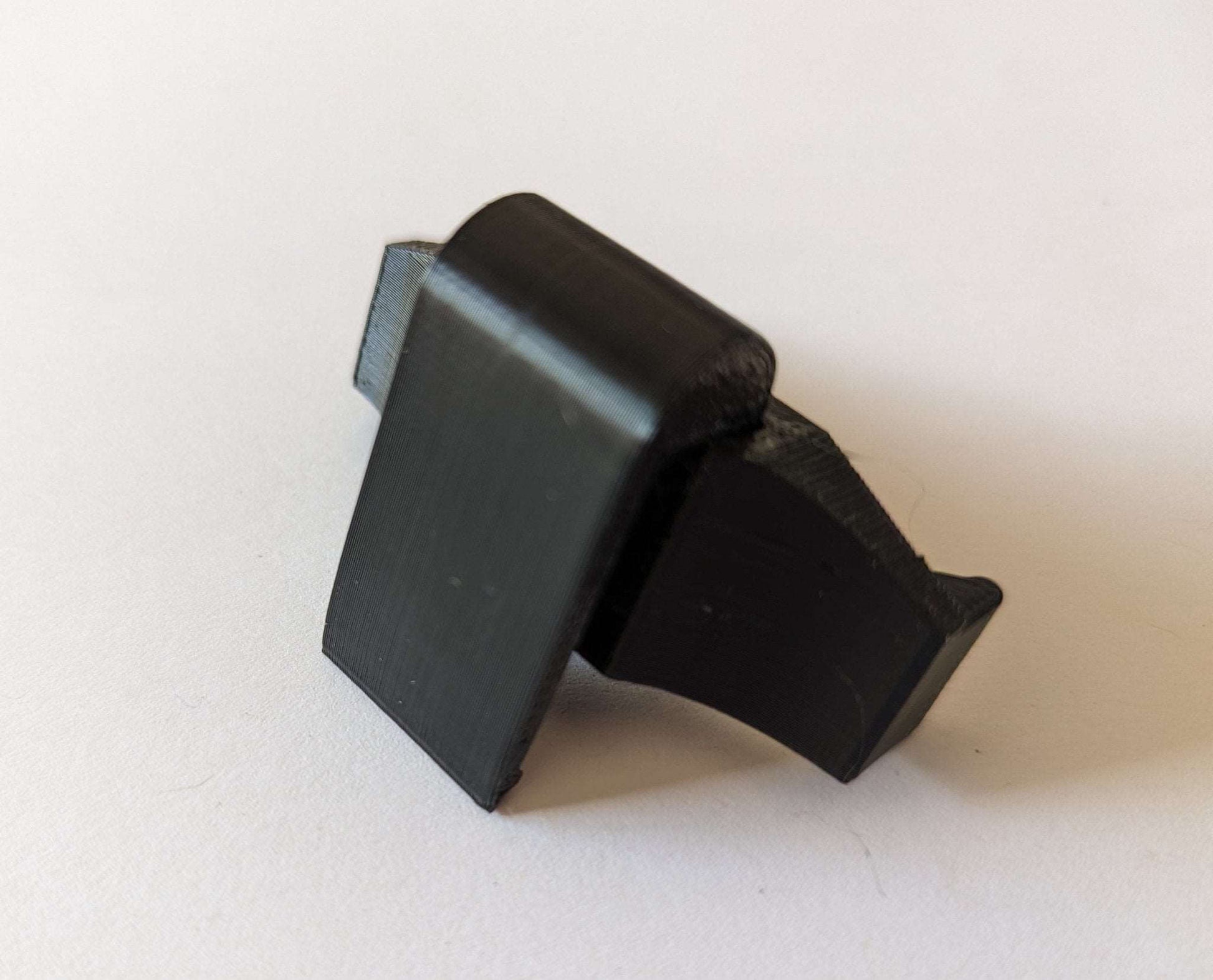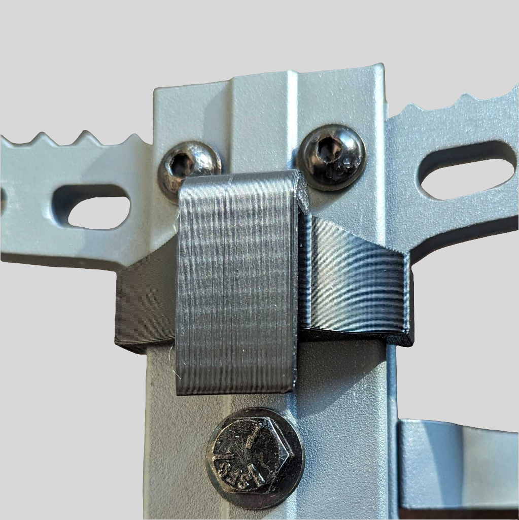 Molle climbing stick caddy designed for the Hawk Helium stick. The bracket is designed to always stay on the stick and the back clip easily lifts on/off a molle loop or a 1" belt for when climbing. Two pieces held together with a stainless steel screw. Saddle and stick(s) not included.