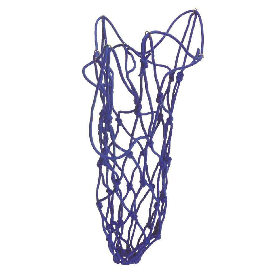 This knotted poly cord net will hold about 25 lbs. of hay. Handy in the stable or the trailer. Comes in blue only!