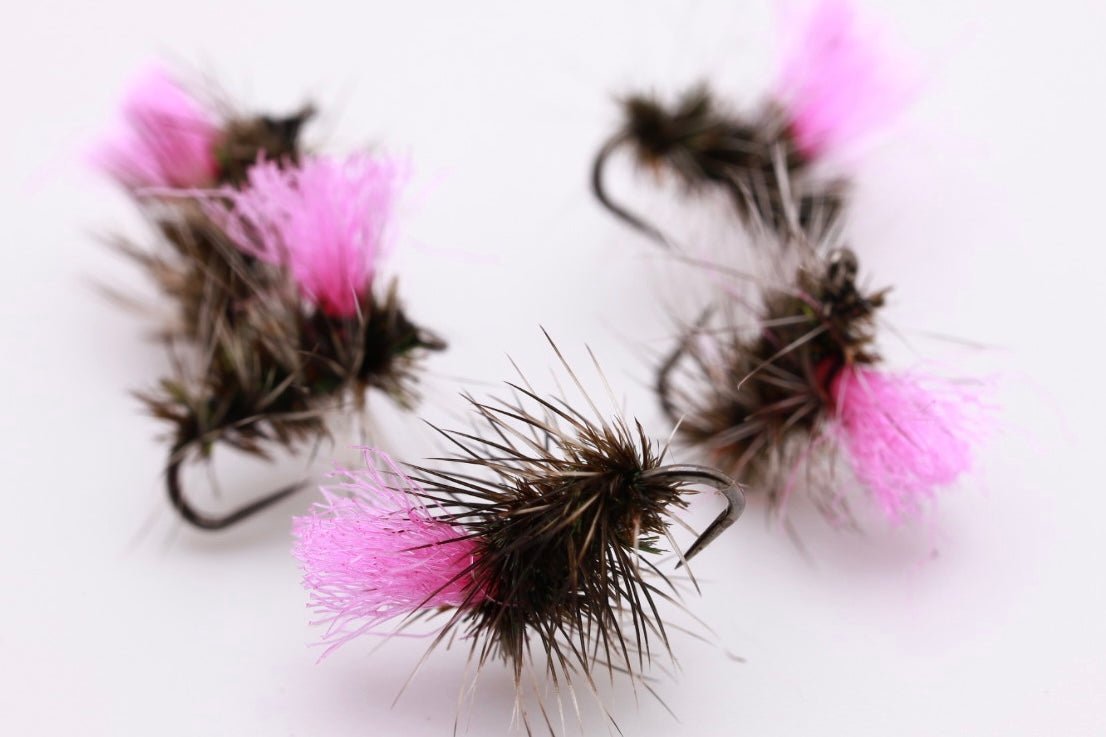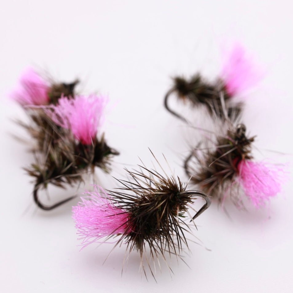 The Hi-Viz Gnat is a fishing fly designed to imitate small gnats or midges. It often features a high-visibility indicator on the body, such as a brightly colored post or wing, making it easier for anglers to track the fly on the water's surface. This visibility helps in detecting subtle strikes when fishing for trout in slow-moving or still waters. The rest of the fly typically mimics the appearance of a gnat, with a slender body and fine wings.