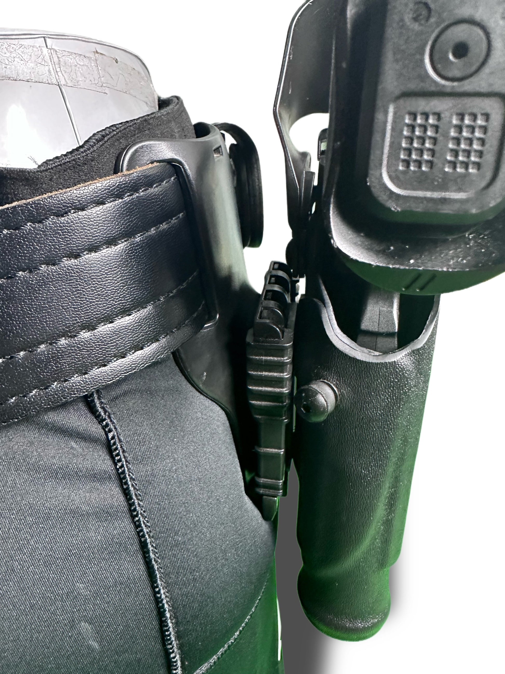 Moisture resistant with padded layer providing ultra comfort while carrying a firearm on the hip whether in a conceal carry or duty capacity. Very effective in preventing pinching or rubbing while conceal carrying and preventing the "stabbing" feeling into your leg over time while wearing a paddle holster on/off duty.