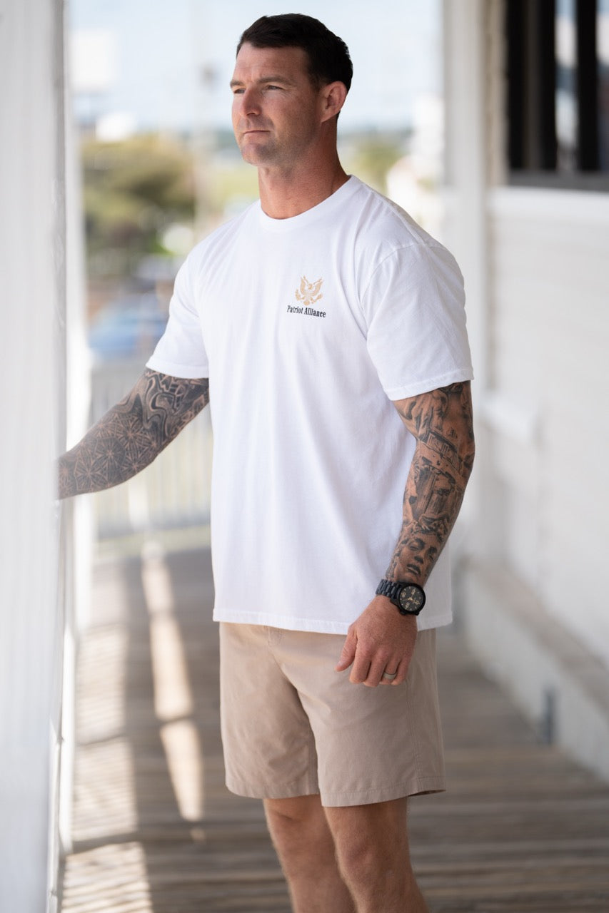MATERIAL: Constructed from a durable and soft-touch fabric blend of high-quality 50% Ringspun Cotton / 50% Polyester blend, featuring a printed neck tag for added comfort and longevity.