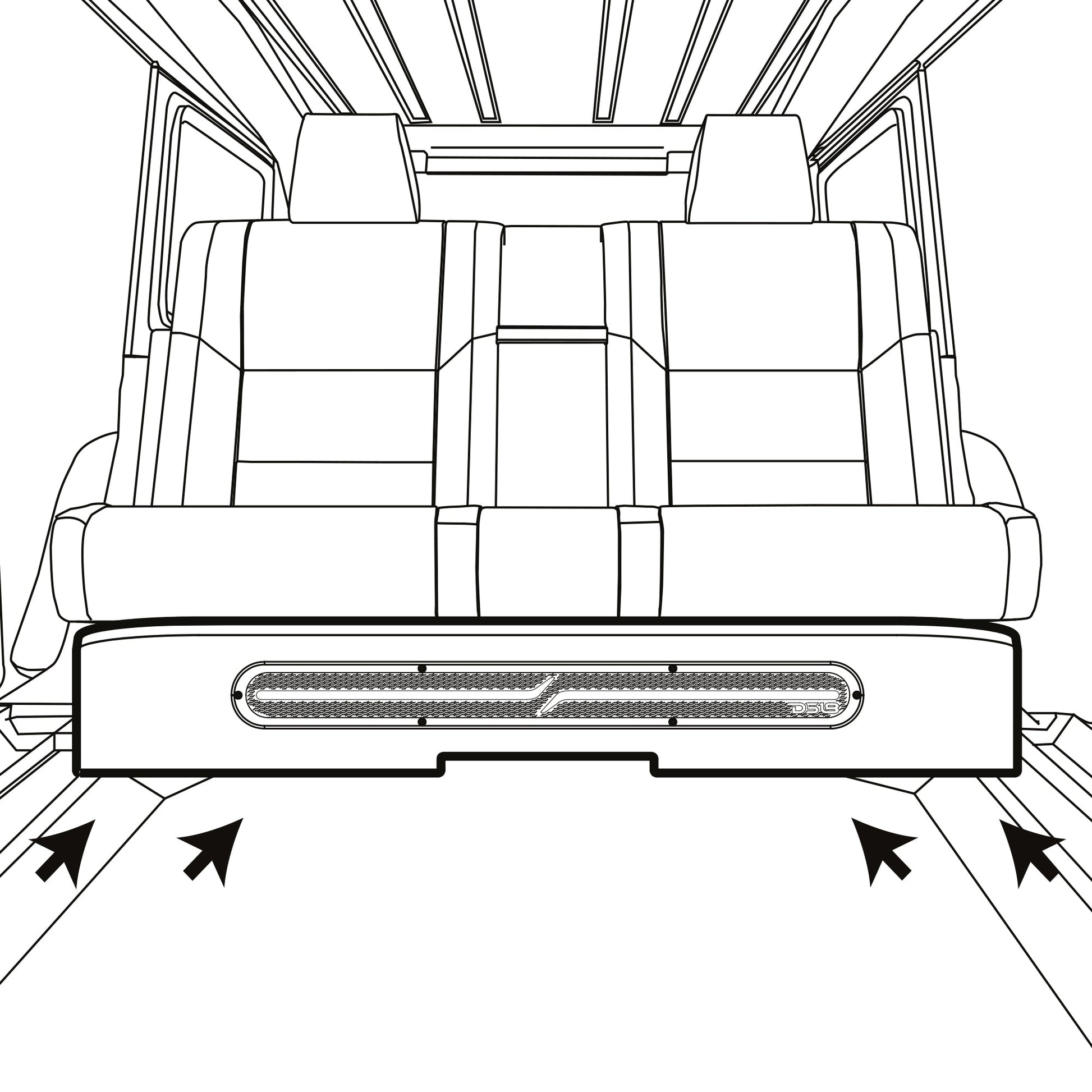 Designed to fit under the rear seat of 2020+ Jeep Gladiator models with zero seat lift required, this sealed enclosure pumps out a whopping 1800W RMS (3600W MAX) at a 1-ohm final load.