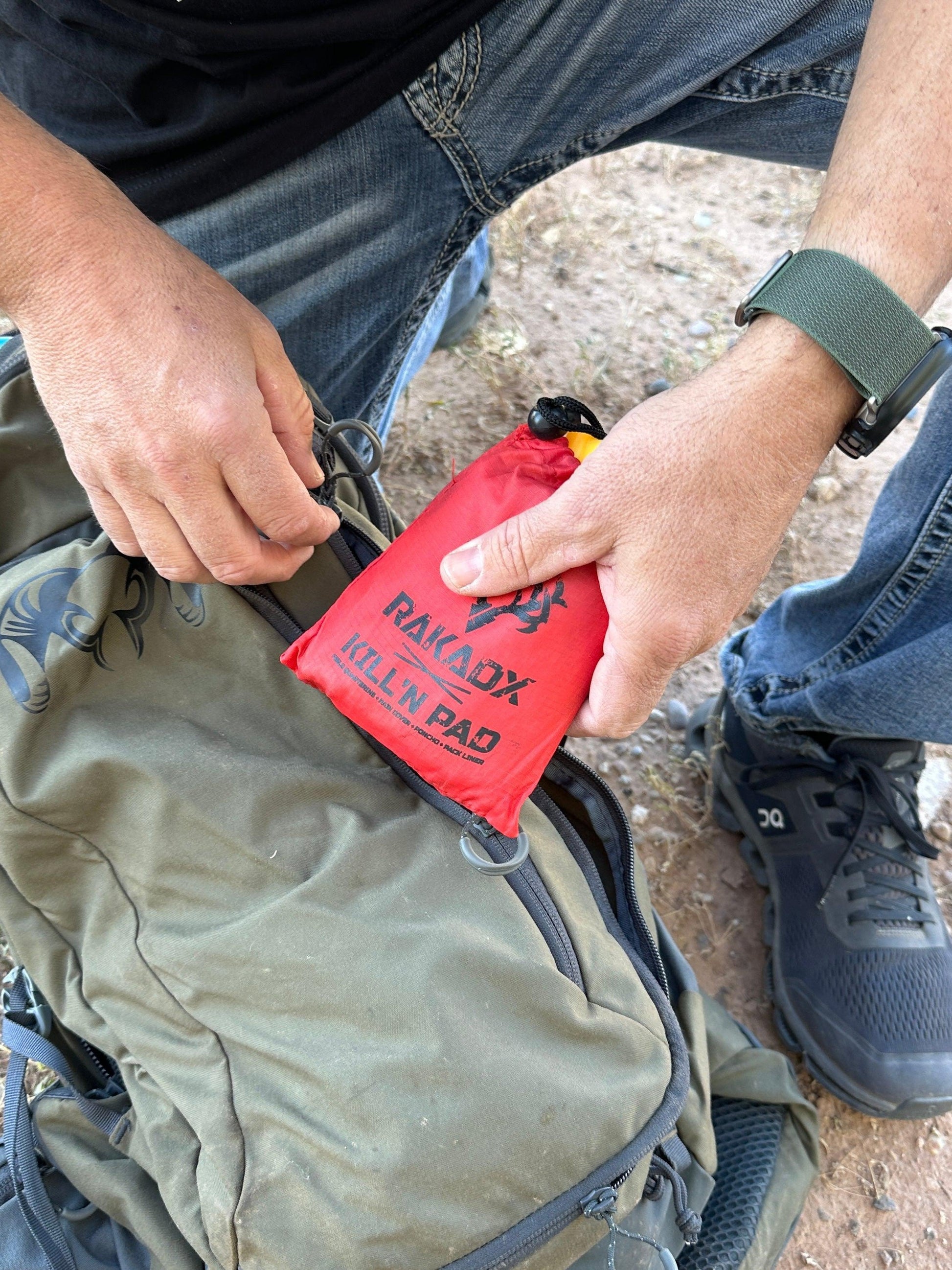 The ultimate tool that you never want to forget to put in your backpack. Field quartering ground cover, rain cover, poncho, pack liner.