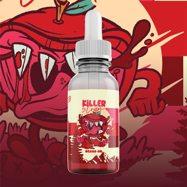 Product Info: 1 Fl. Oz. of Killer Cran Beard Oil in a Shaded Red Boston Glass Bottle