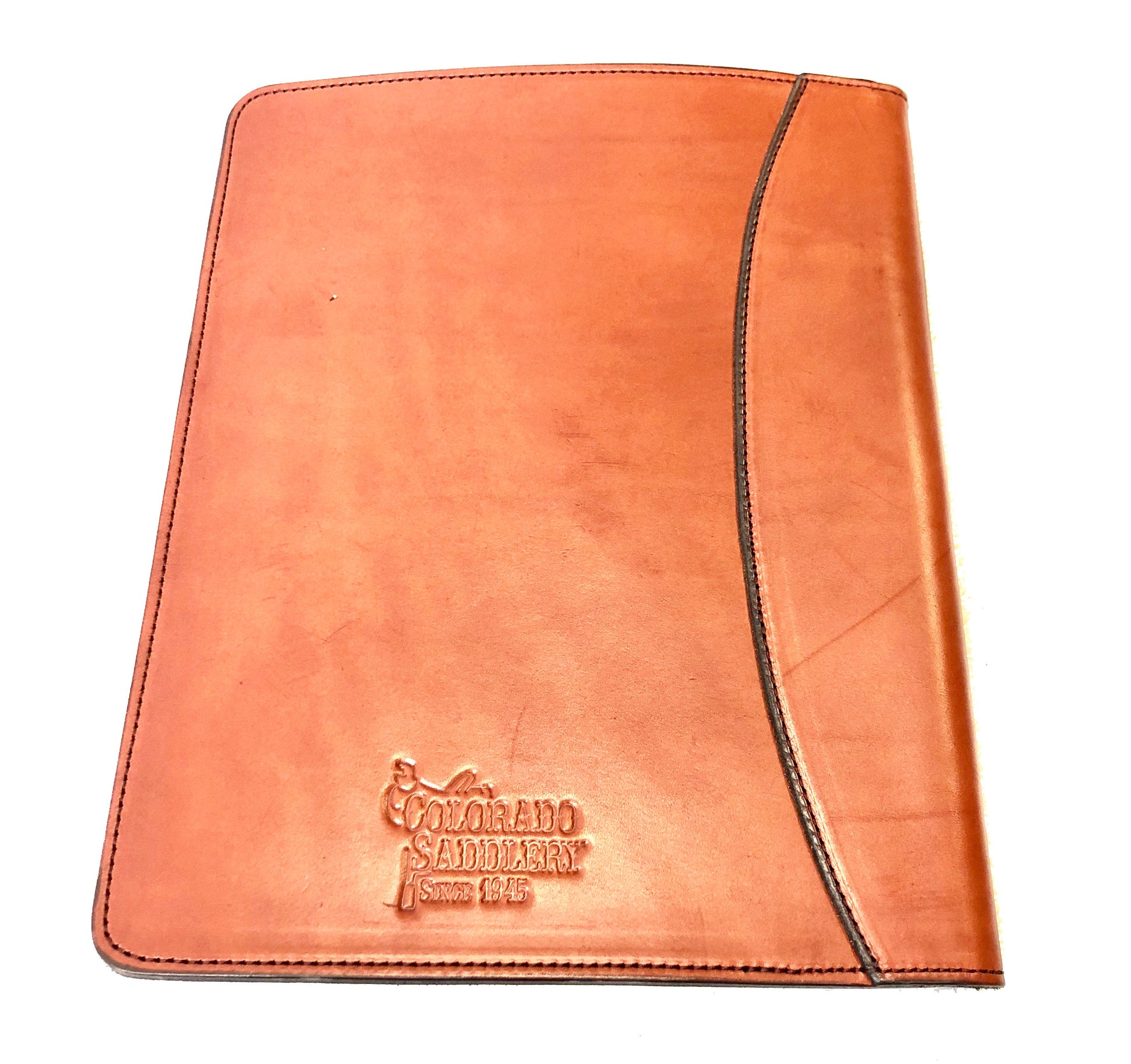 The Colorado Saddlery Large notebook cover is a beautiful way to protect books or notebooks. These attractive handmade covers are made out of sturdy, genuine saddle leather and fit notebooks nicely. The inside of the cover has pockets for cards, notes, and writing utensils. The sides have page holders.