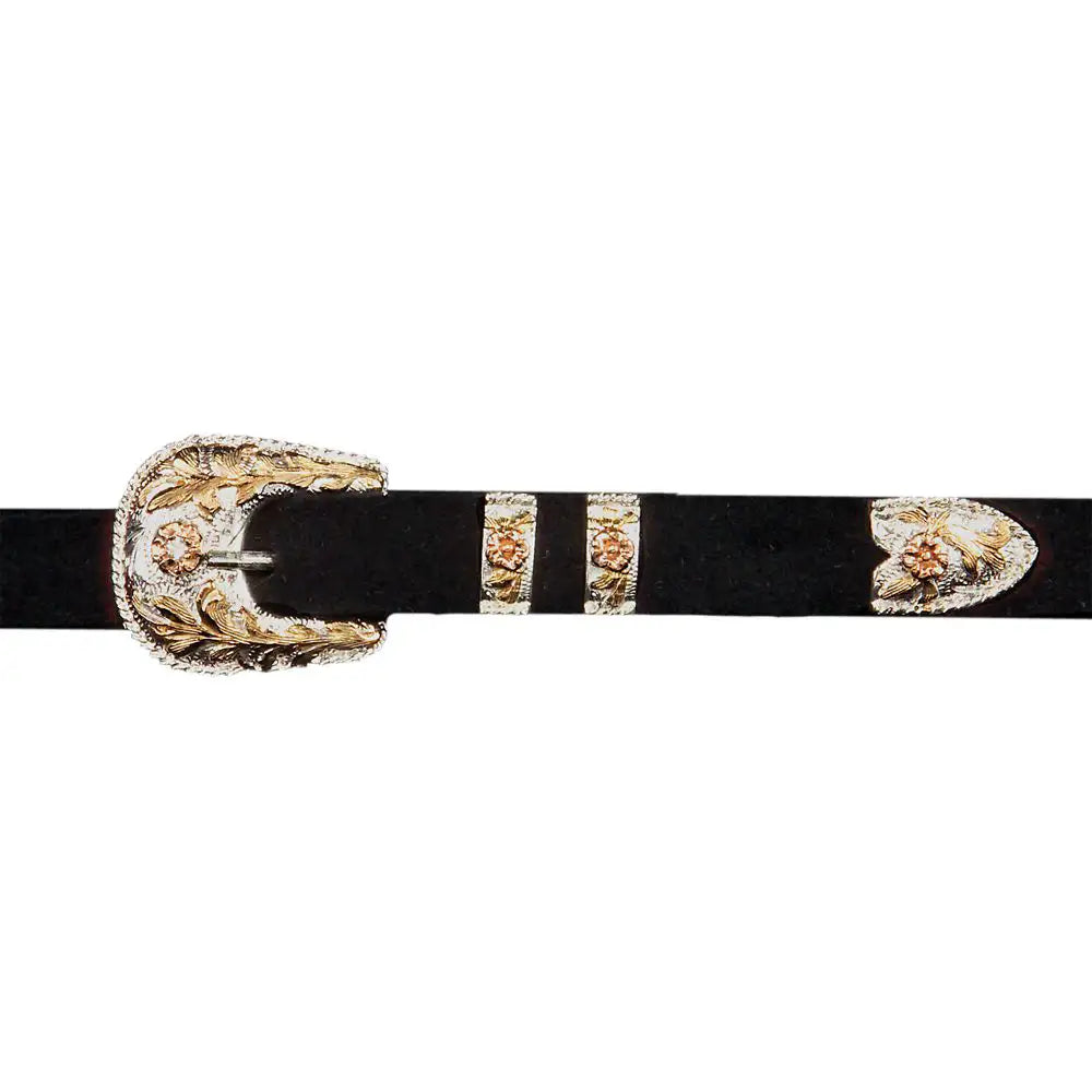 - Silver-Toned Three Piece Buckle Set with Gold Accent