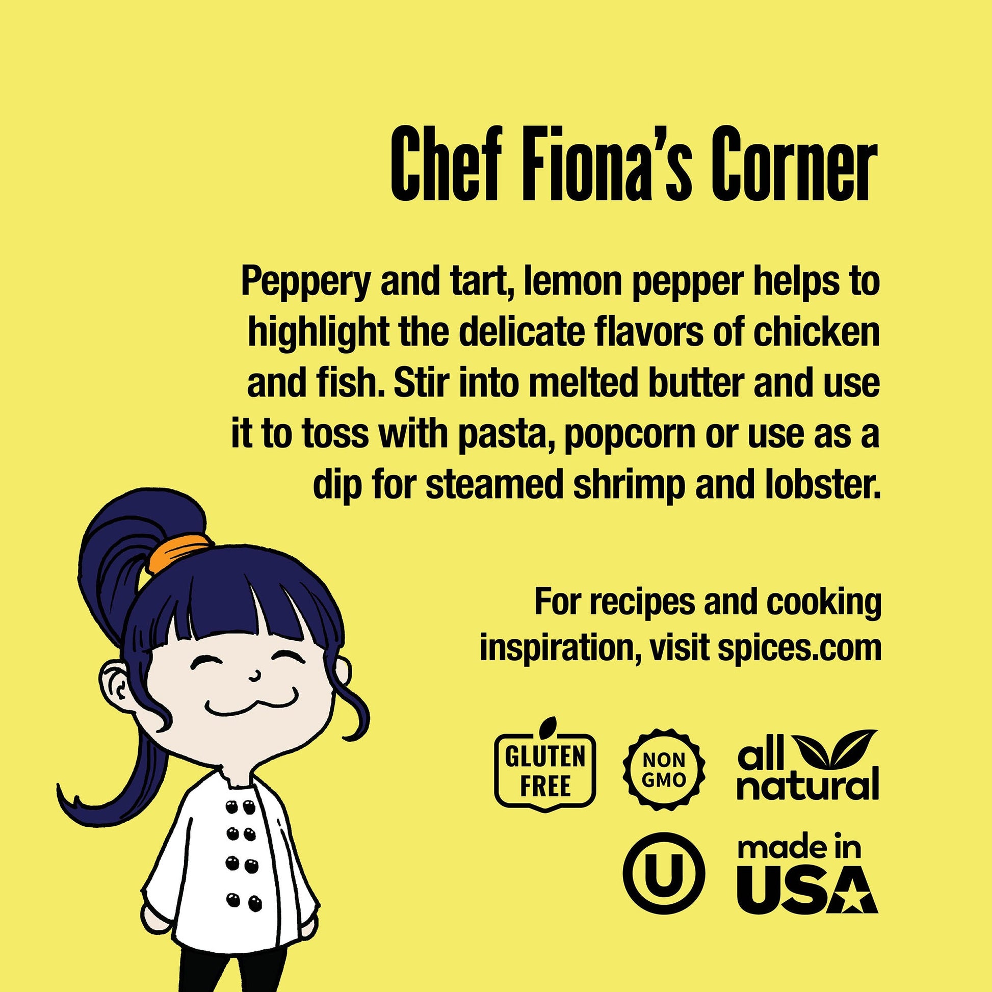PANTRY ESSENTIAL: No spice pantry is complete without a jar of tart and peppery Lemon Pepper seasoning. Our small batch seasoning is perfect for highlighting the delicate flavors of chicken and fish.