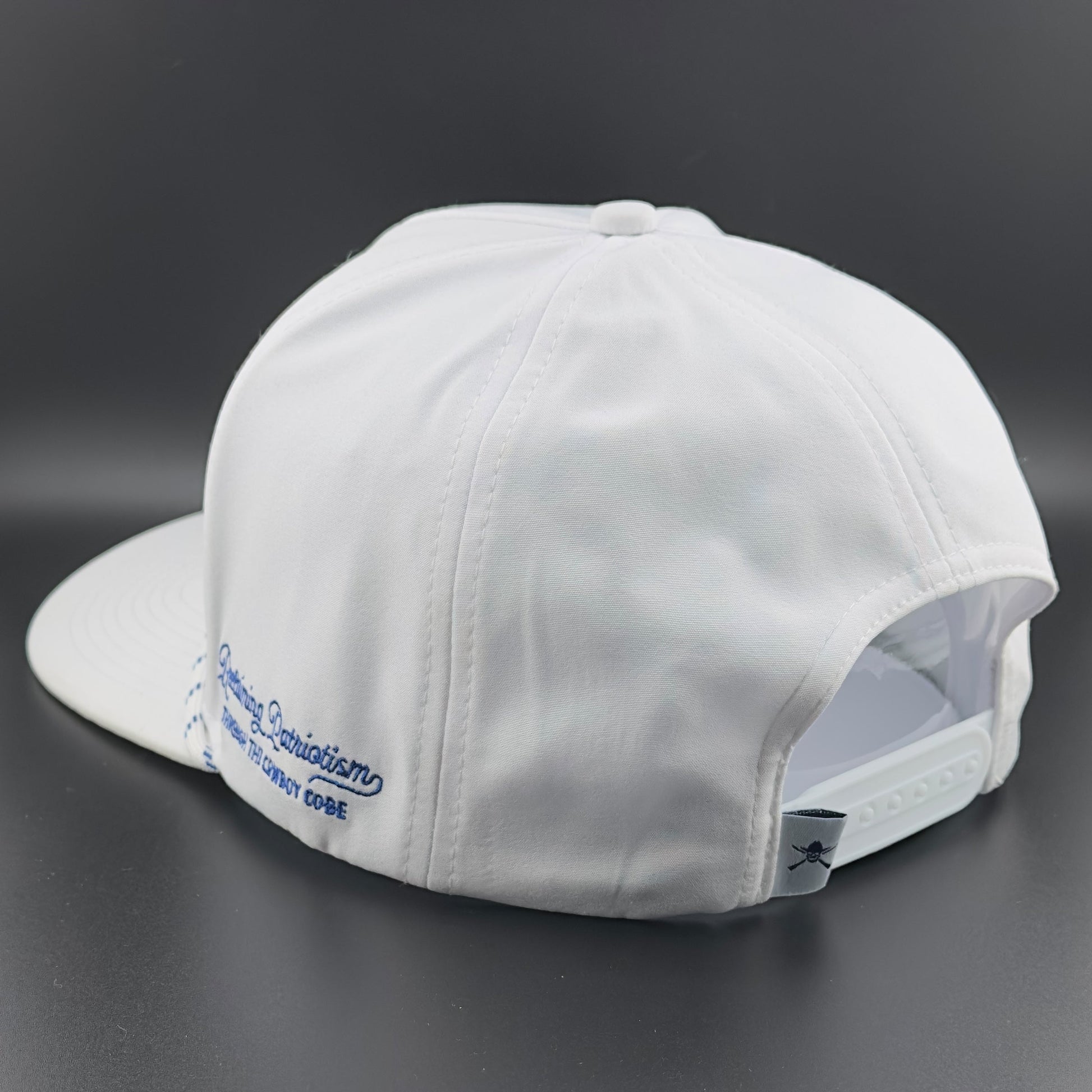 Introducing the "Lightning" White Performance Hat – a dynamic fusion of style and functionality that pays homage to the unwavering patriotic spirit of the Cowboy Revolution. Crafted for those who appreciate the intersection of rugged resilience and modern performance, this hat is more than an accessory—it's a statement.