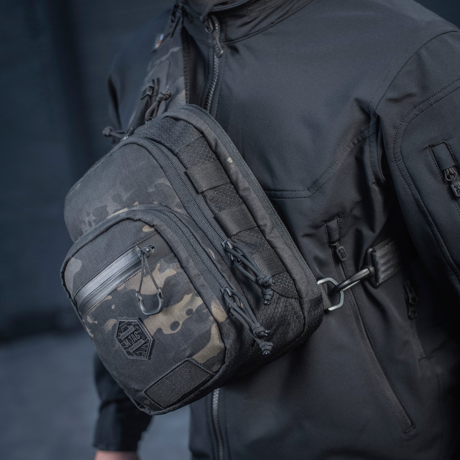 The M-TAC Cross Bag Elite is a successful combination of a bag and a small backpack. Accessories of this type are also called a sling pack, i.e. a backpack / bag for one shoulder. Crafted from Cordura 500D and Cordura Hex - abrasion-resistant and low-maintenance material. The bag is harnessed with a shoulder sling and a MOLLE interface to attach additional equipment. The bag consists of three main compartments to pack all your belongings with ease. The thoughtful arrangement of pockets and compartments will help you in any situation to place all your carry-on items as conveniently as possible. The bag also has compartment for concealed carrying weapons. The inside is lined with a loop panel, so you can attach a holster (not included) or modular organizer inserts.
