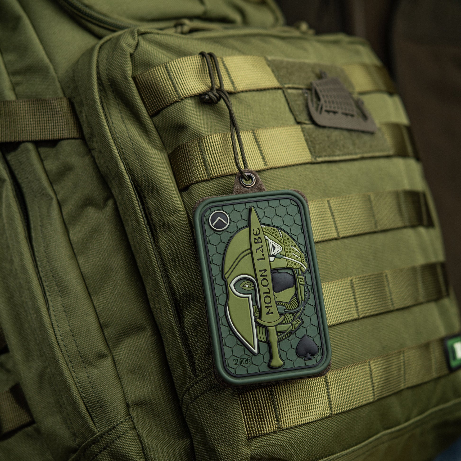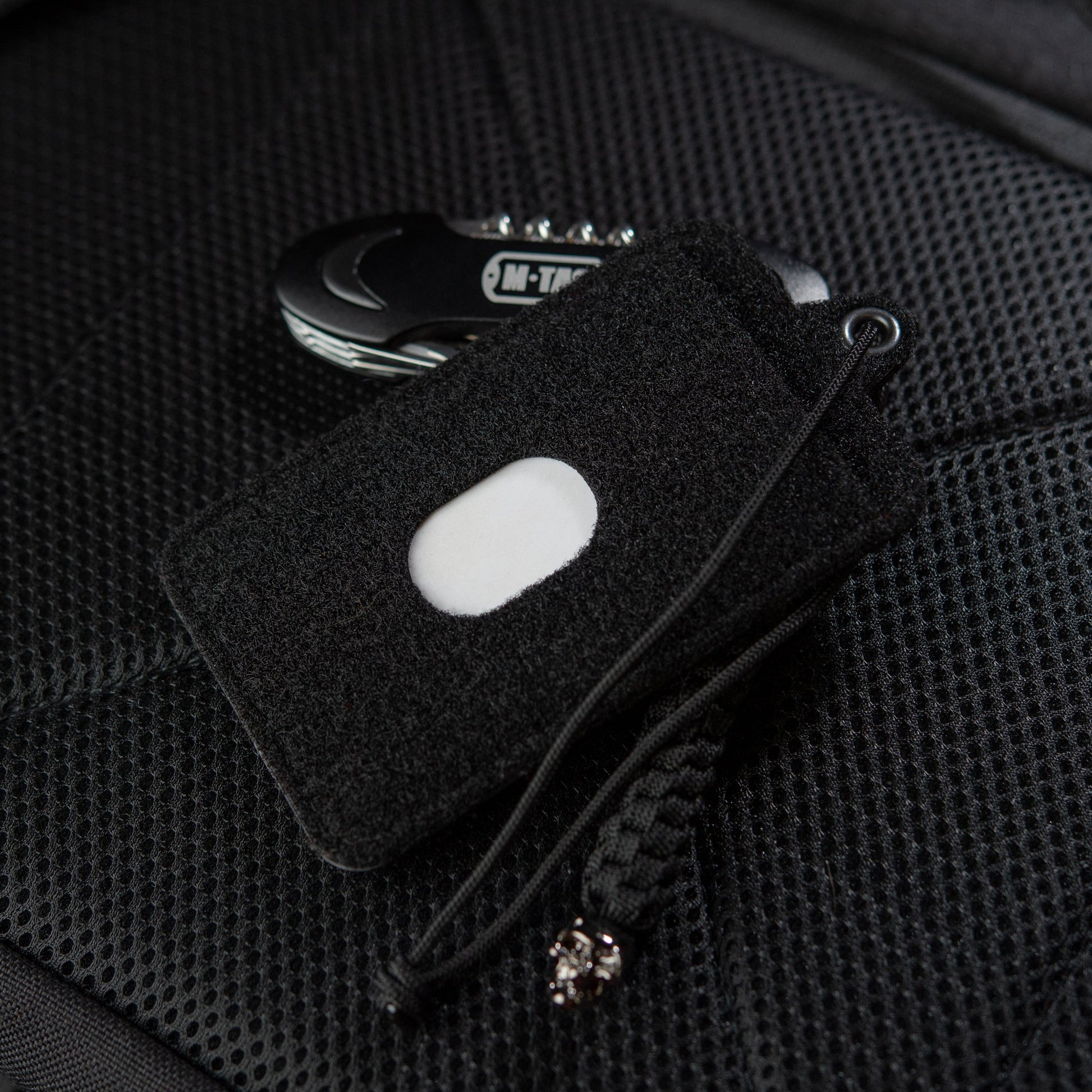 The M-Tac Tactical Badge Holder is a hanging patch display board with ID card pocket. Plastic base for firmness. Soft loop panels on both sides for patches and identifiers. Metal eyelet with thin paracord, about 5.9 inches long. Pocket for a key card or travel card.