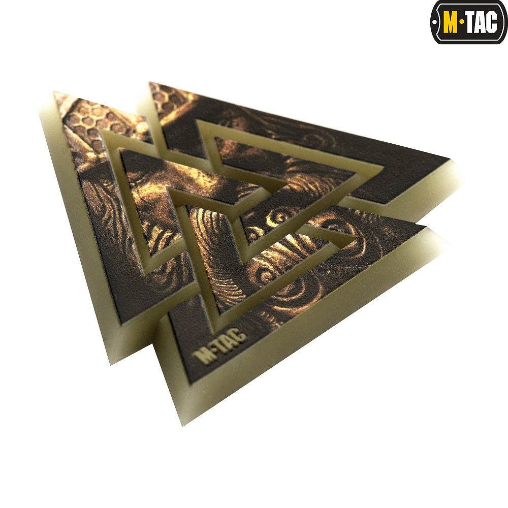 The M-Tac patch Valknut 3D PVC dedicated to such a Scandinavian magical sign as Valknut. Valknut - a magic symbol that consists of three interconnected triangles. The Valknut is a symbol of Odin and related magic, a symbol of crossings (bridges) between worlds. Each of the Valknut triangles corresponds to three vertical worlds: one Asgard or Alfheim (upper world), the other - Midgard (middle world), the third - Hell or Svartalfheim (lower world). On the front side of the patch applied a colored image of the Scandinavian warrior: severe, with a beard and mustache, in a combat helmet. The patch made of high-quality material - polyvinyl chloride (PVC) using 3D technology, thanks to which the patch is voluminous, and the image is very realistic. It has a hook fastener that will allow you to attach it anywhere that has a loop panel.