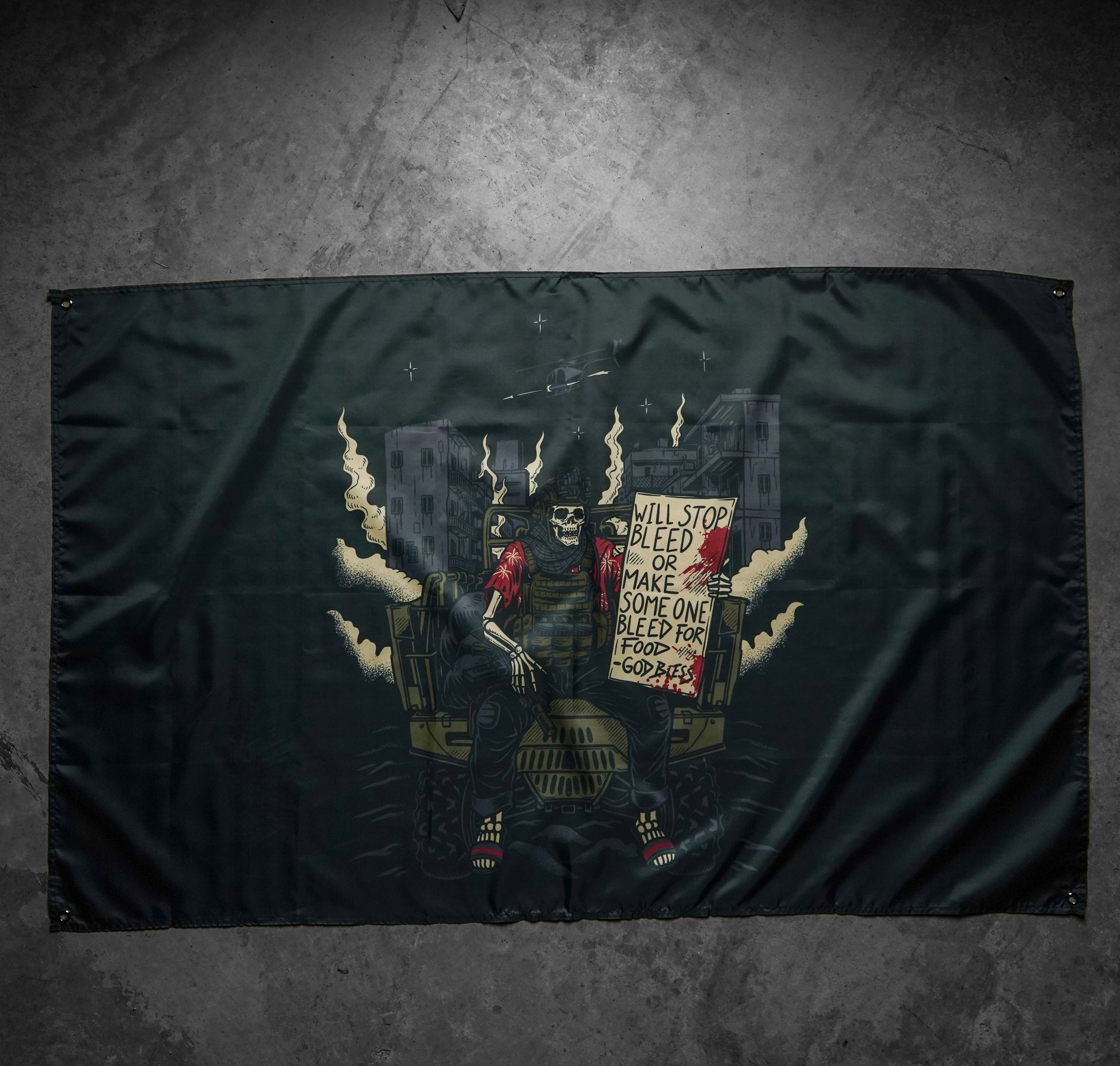 The Mercenary banner commands your AO with relentless intensity and sharp style. Crafted from lightweight, durable polyester, this 5' x 3' indoor banner features a high-quality one-sided print that delivers savage artwork with precision. Equipped with four reinforced grommets for secure hanging, it’s built to dominate any space with expert-level edge and uncompromising presence.