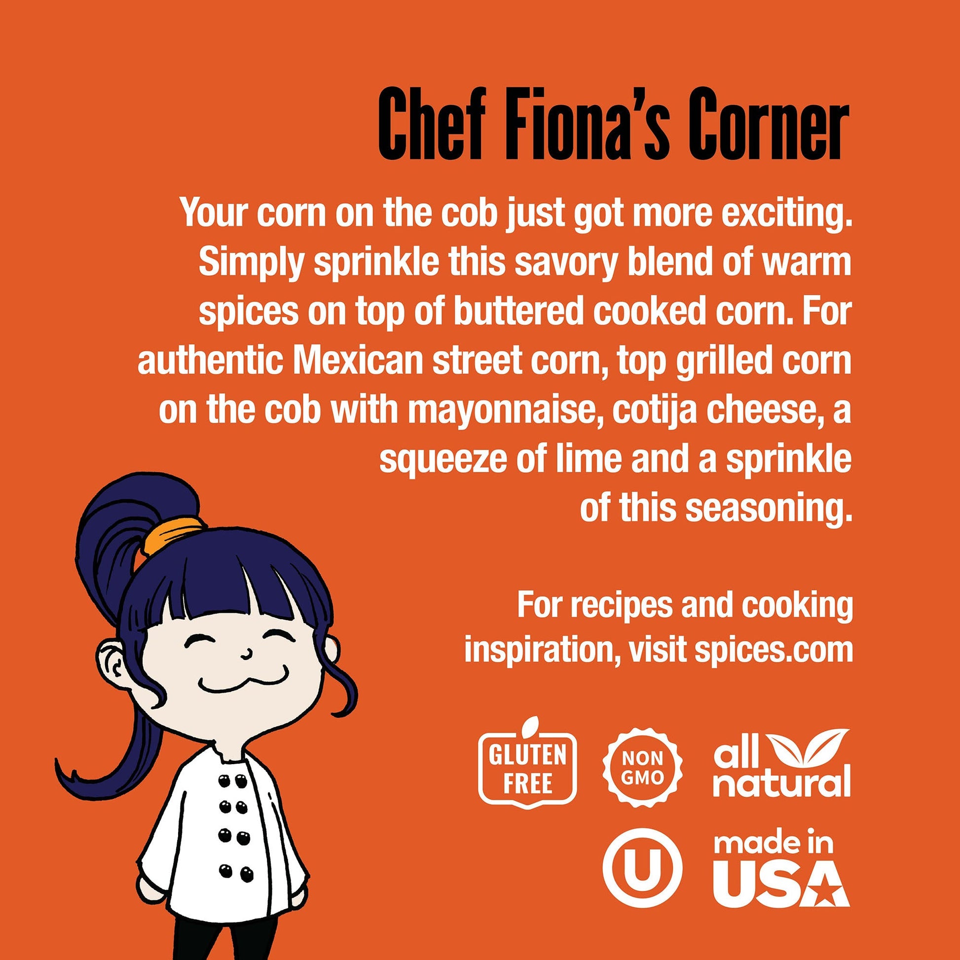 SUCCULENT MEXICAN ELOTE SEASONING: When you want authentic, Mexican street vendor flavor, reach for our Street Corn Seasoning. Top off grilled corn with mayonnaise, Cotija cheese, a squeeze of lime and a few shakes from this gluten-free blend for that authentic taste.