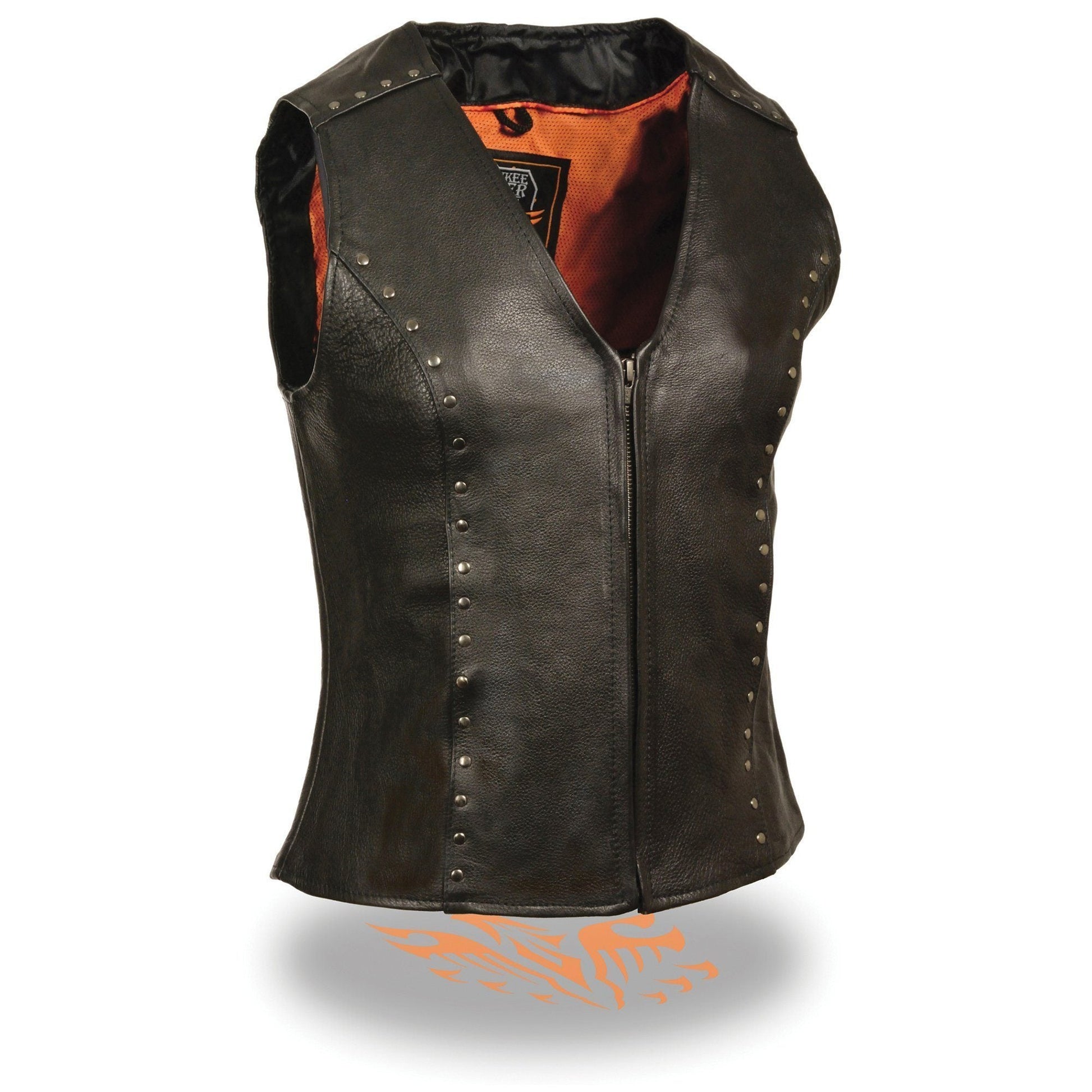 Milwaukee Leather ML2078 Women's Black Premium Leather Motorcycle Rider Vest w/ Studding Detail