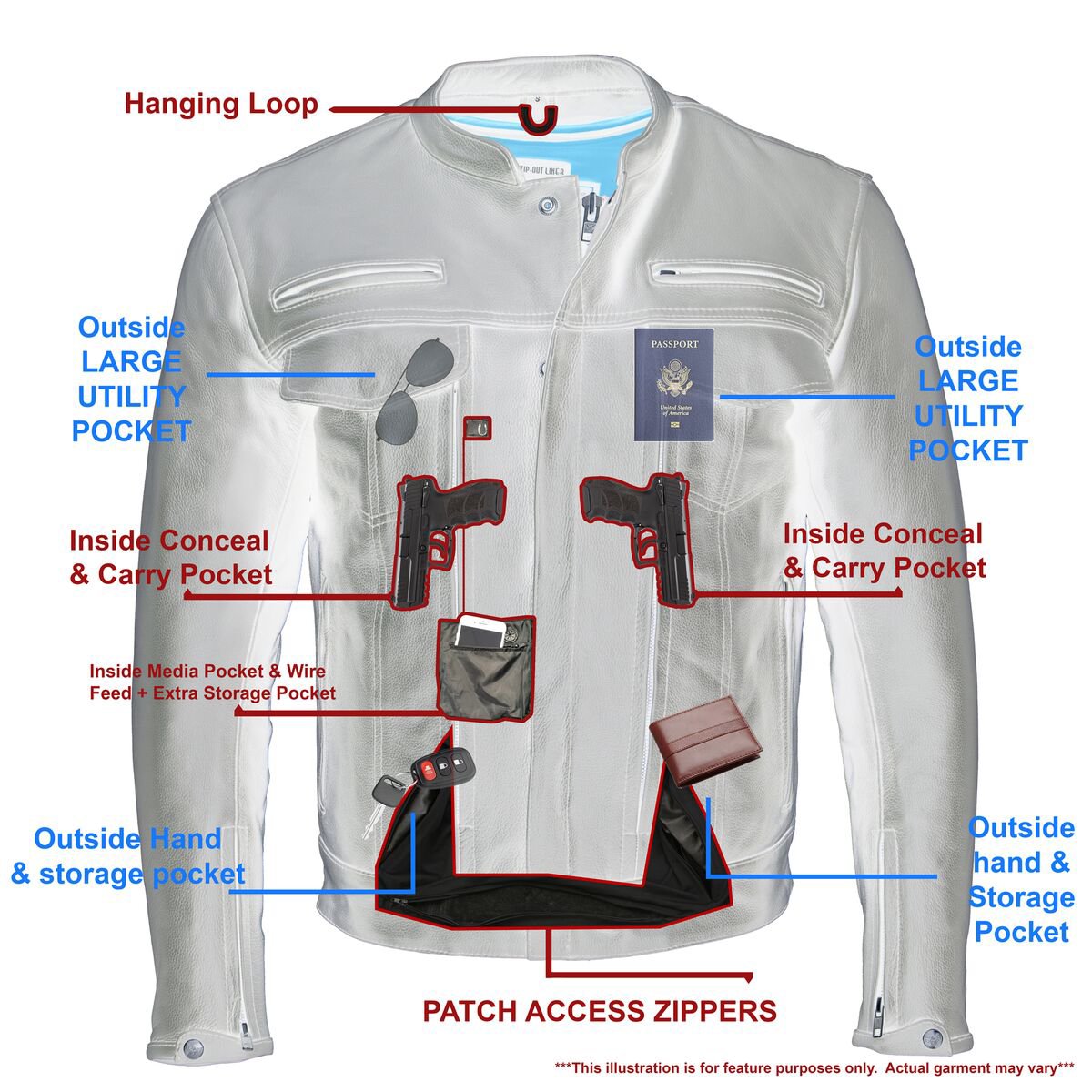 Milwaukee Leather MLM1506 Men's Black 'Cool-Tec' Leather Jacket with Utility Pockets