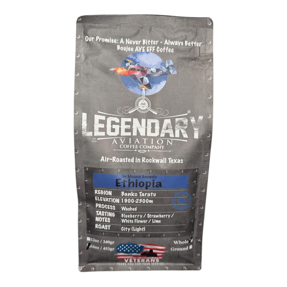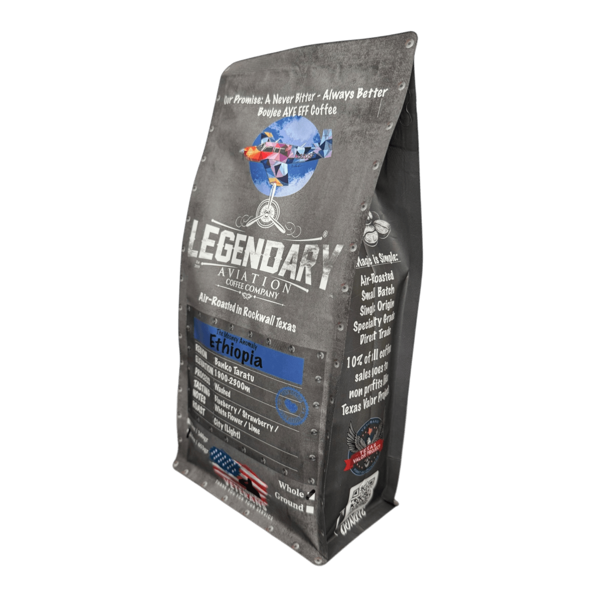 Introducing the Mooney Anomaly Ethiopian Coffee from Legendary Aviation Coffee Company, a unique collaboration with the owner of the iconic Mooney Anomaly aircraft. Sourced from Ethiopia’s Banko Taratu region, this light roast (City), grown at elevations of 1,900 - 2,300 meters created an exceptionally clean, vibrant cup of coffee.