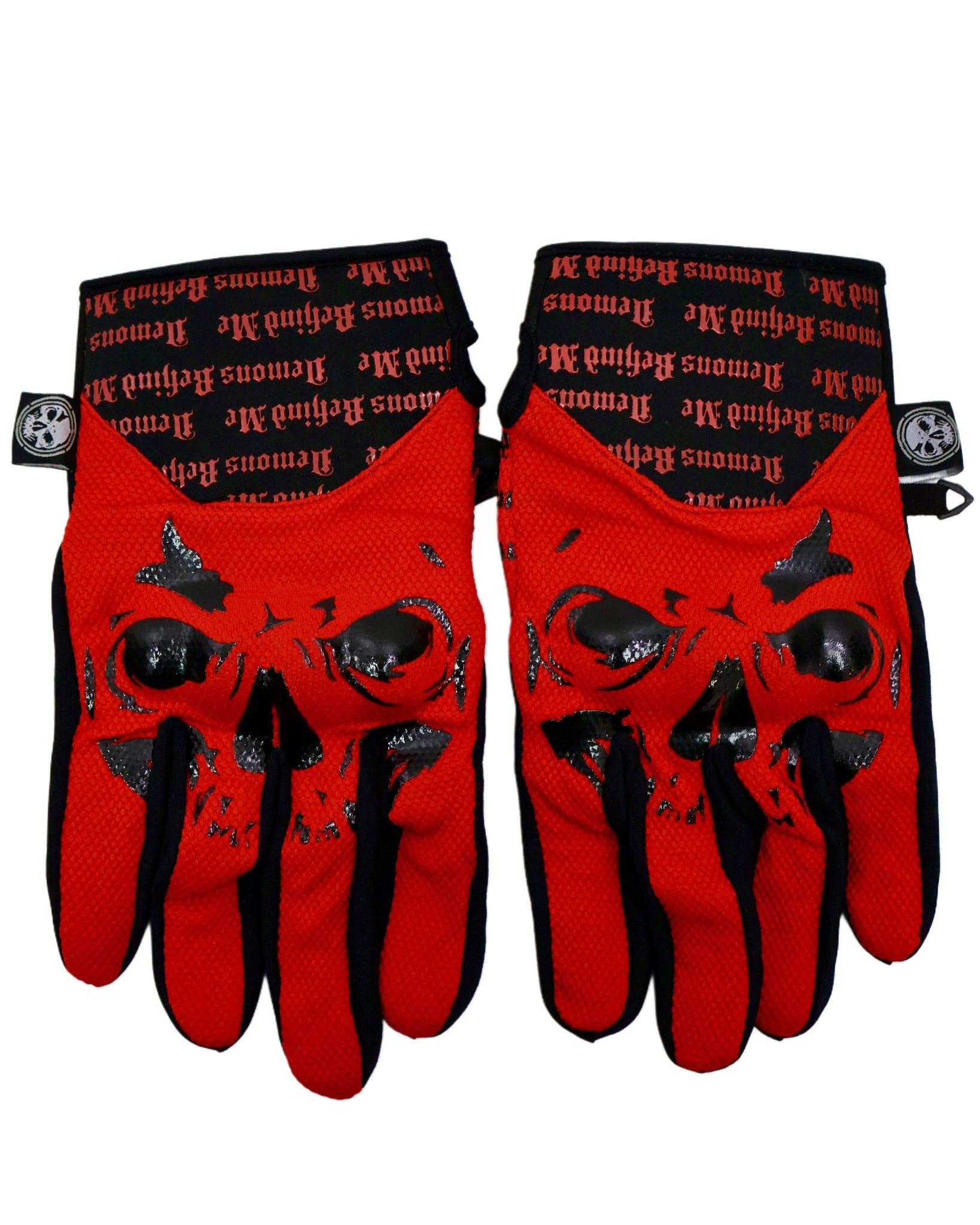High performance riding gloves, featuring padded knuckle guard, genuine leather padded palms, smartphone compatible fingertips, Velcro wrist closures, and stretch spandex body.