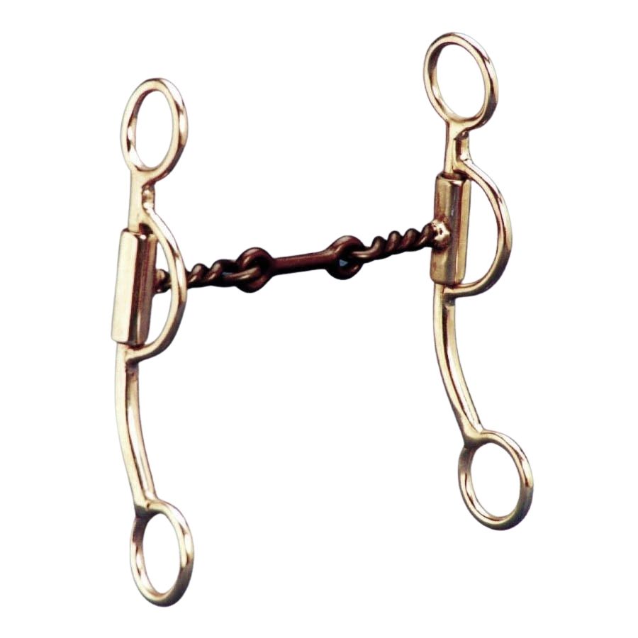 An extremely nice, trim and balanced bit. 6 1/2" stainless steel 4-rein cheeks. 5", 3-Piecemouth, partial twist, sweet iron wire with sweet iron barbell center for better fit. Long barrel "No Pinch" where mouth attaches to cheek.