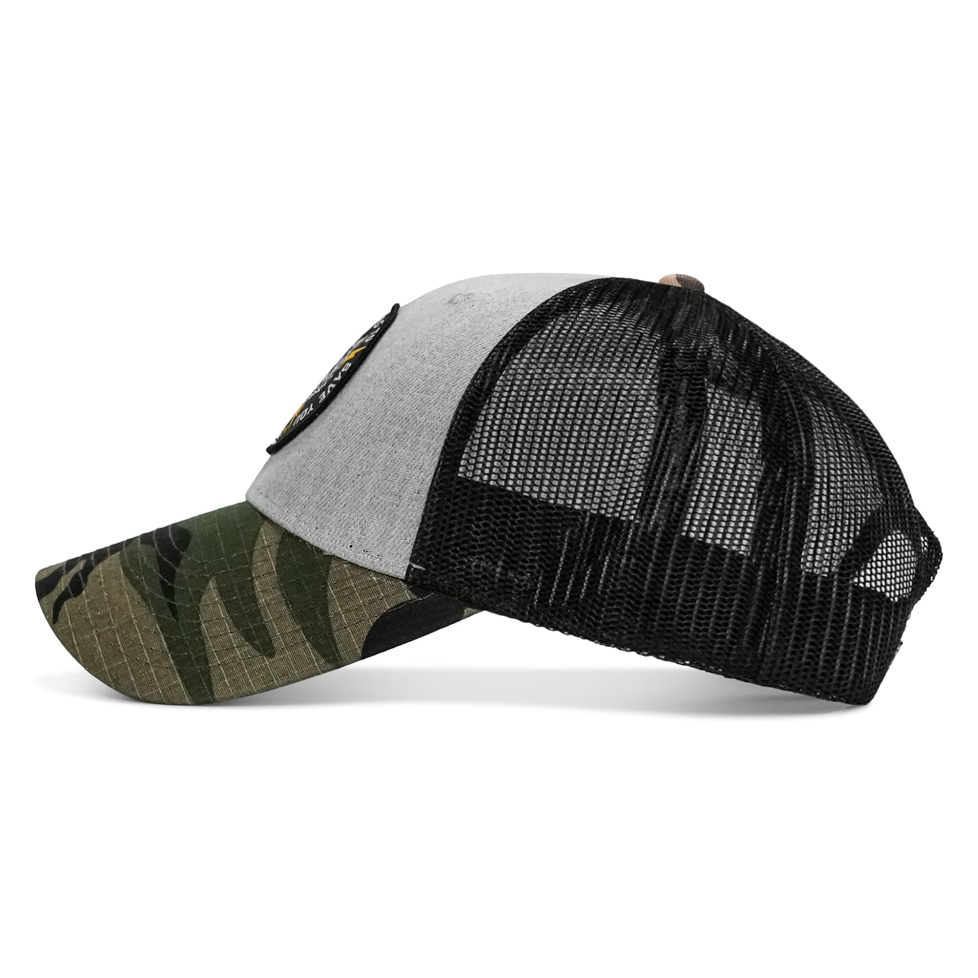 - FABRIC: POLY/COTTON BLEND + POLYESTER MESH REAR