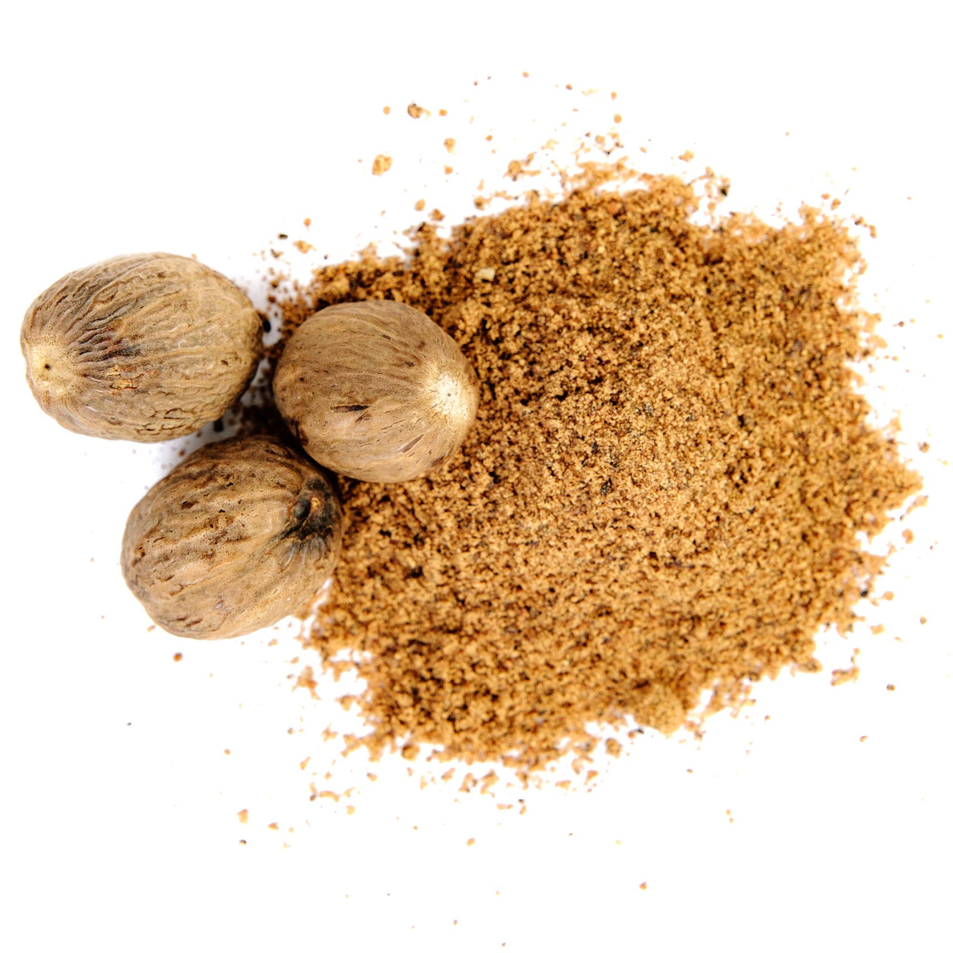 NUTMEG SPICE FOR HOLIDAY EGG NOG: Along with ground cinnamon and allspice, nutmeg is a traditional member of the holiday season baking trio. It's a warm, sweet sprinkle for cinnamon coffee and a tasty seasoning for pasta.