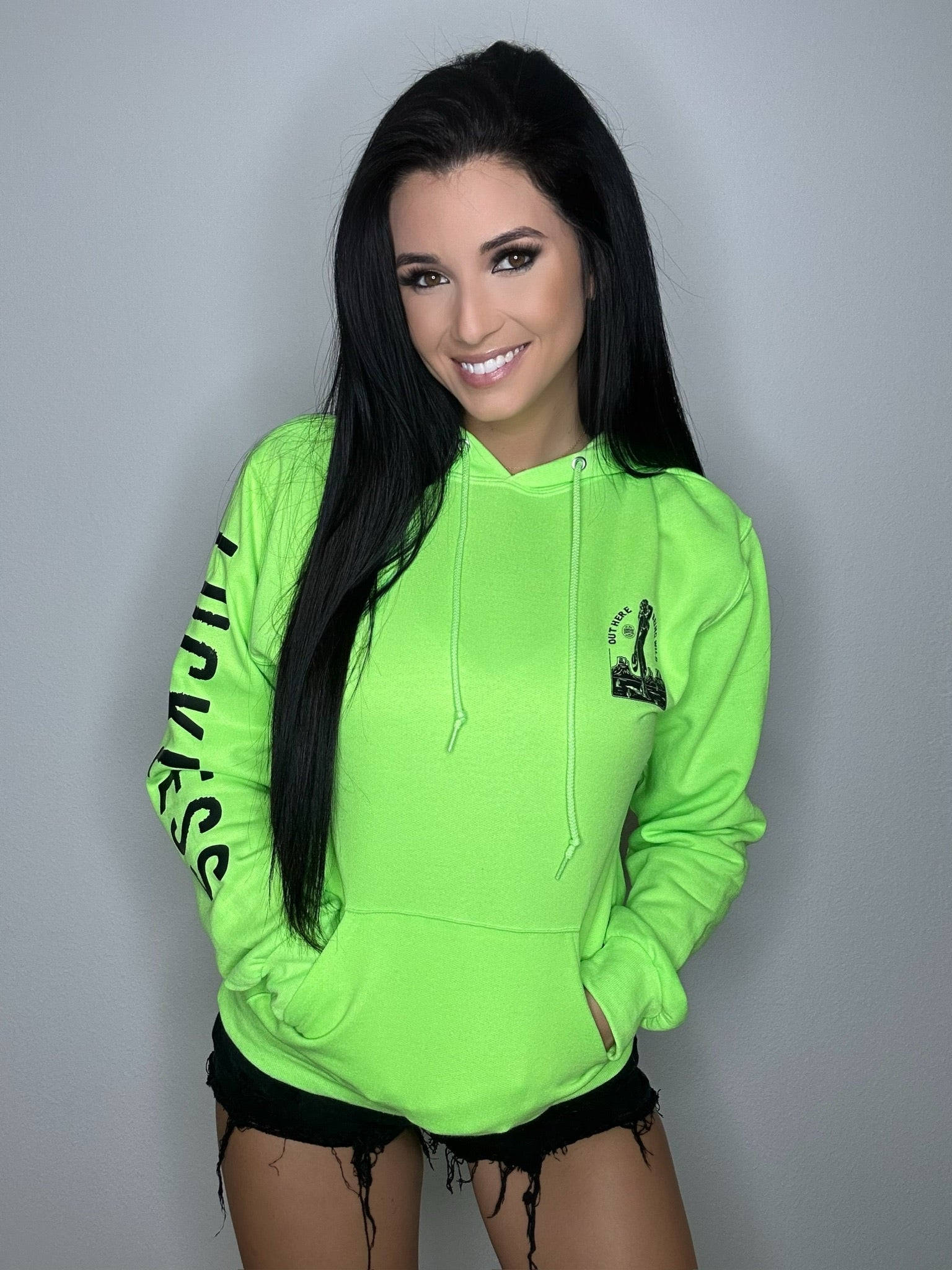 For the free spirits and desert wanderers, this neon green hoodie is made to fit your untamed lifestyle. Featuring a cowgirl in a bikini holding her hat against a desert backdrop, it’s a nod to those who live wild and free. Built tough from a 50/50 cotton-poly blend, it’s soft enough for comfort but durable enough for whatever the day throws at you. Designed for men and women who know the western life isn’t just a style—it’s a way of being. Kick back, saddle up, and wear it proud. Out Here Being Wild.
